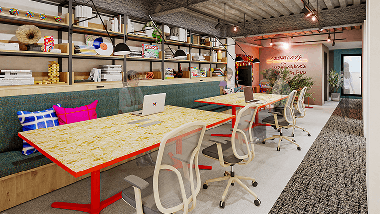 創造性やイノベーションを促進する遊び⼼を取り⼊れたオフィスです。