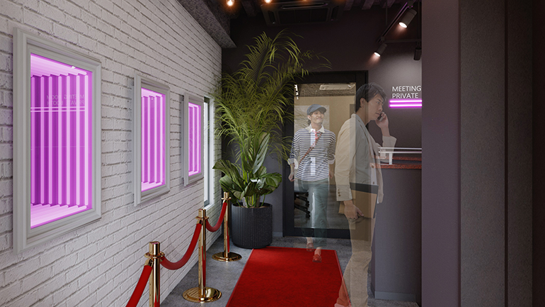 神田に古くから在った「映画館」をテーマとしたファサードと、エントランスホールが来館者を迎えます。