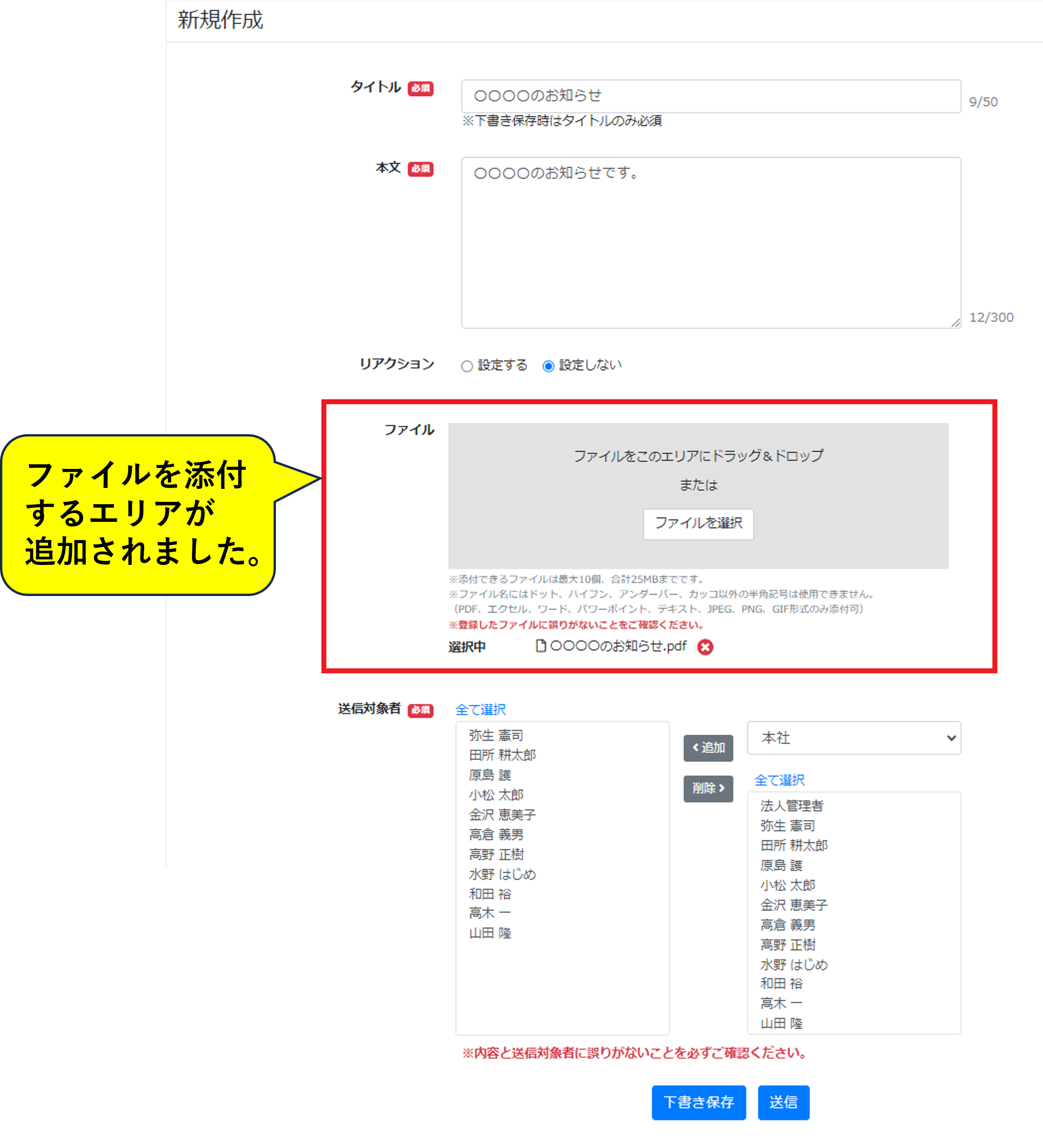 【機能追加のお知らせ】「Focus U 給与明細」「Focus U タイムレコーダー」のメッセージ機能にファイル添付機能を追加