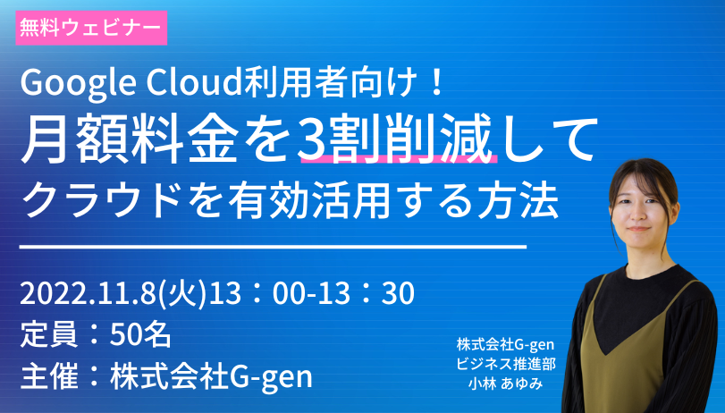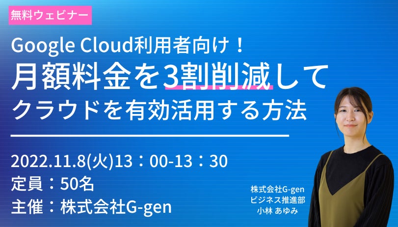 株式会社G-gen、無料ウェビナー「Google Cloud利用者向け!月額料金を3割削減してクラウドを有効活用する方法」を実施