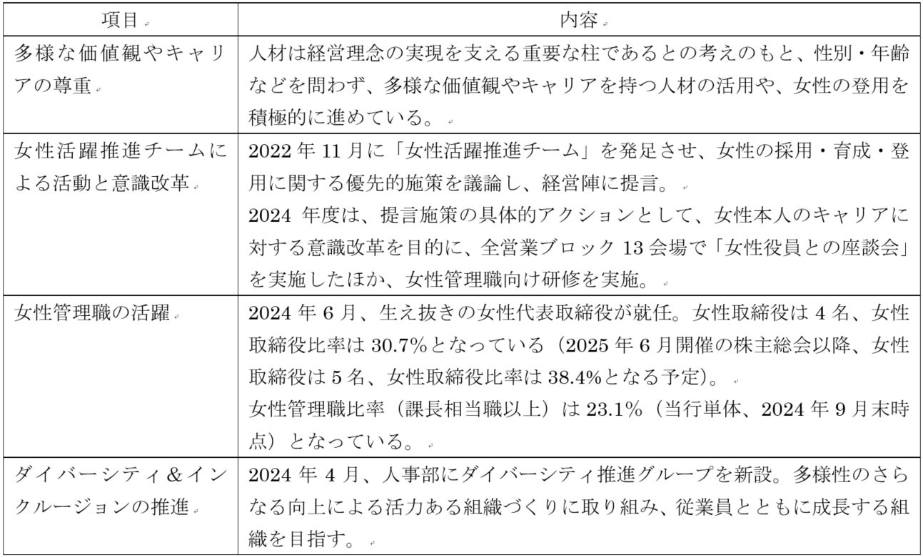 当行は、引き続き多様なキャリアパスを整備し従業員のキャリア形成を積極的に支援するとともに、柔軟な働き方を実現し、働きやすく長く活躍できる職場環境づくりに取り組んでいきます。