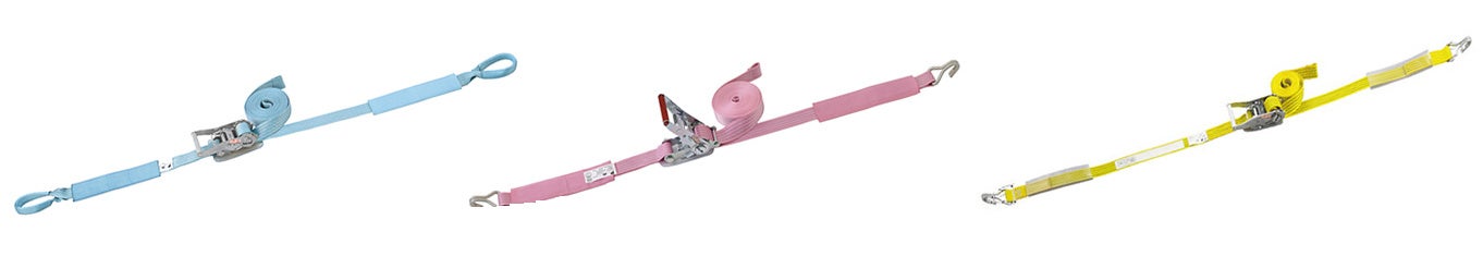 長さやフックの形状が豊富なパーマンのベルト荷締機(ベルトラッシング)。