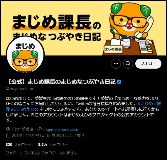 まじめえひめ公式Xでは、愛媛の「まじめ」な魅力を多くの人に届けたいと思った、「まじめえひめ」イメージキャラクターである“まじめ課長”がアカウントの運用を担当し、知る人ぞ知る愛媛県の情報やイベント情報などを毎日投稿しています。