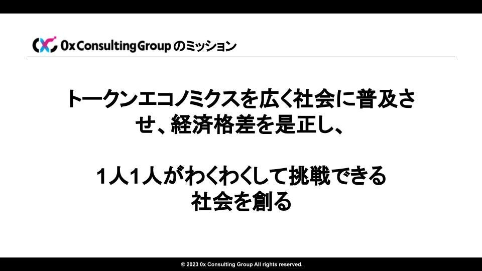 これらの体験から、トークンエコノミクスが広く普及することで、世界のお金が広く分配され、経済格差が緩やかになる社会を実現できると信じて、事業を進めていくことをミッションに掲げています。
