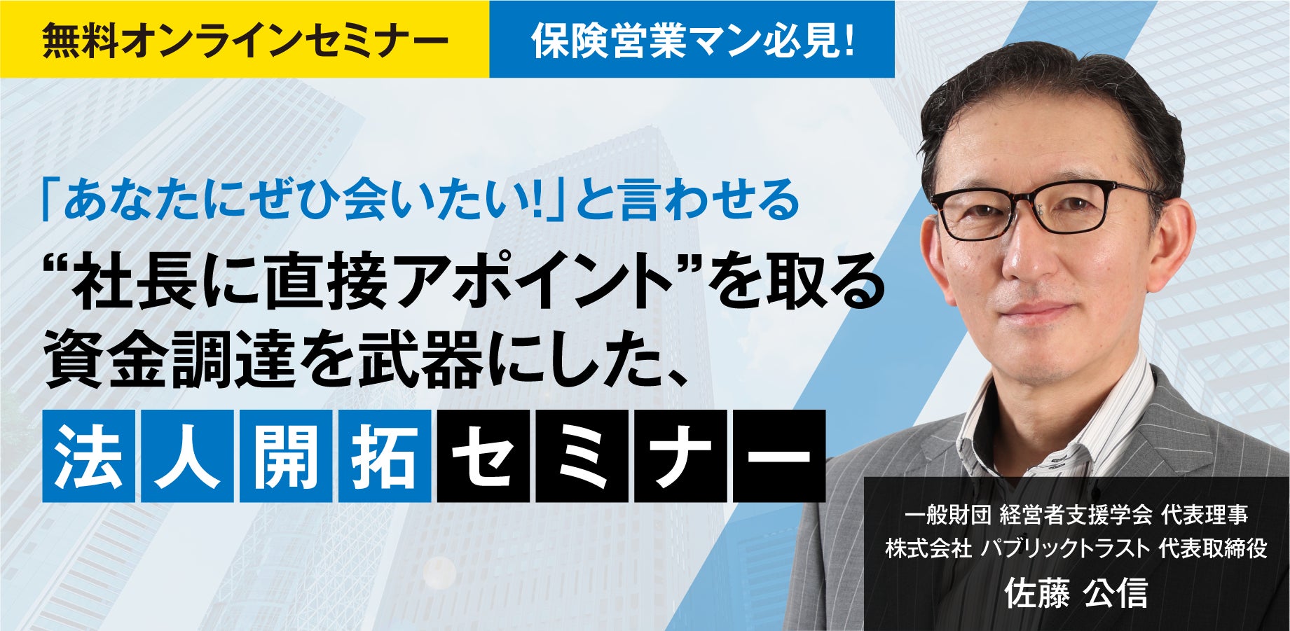 イベント名:「社長直接アポイントを取る 資金調達を武器にした法人開拓セミナー」