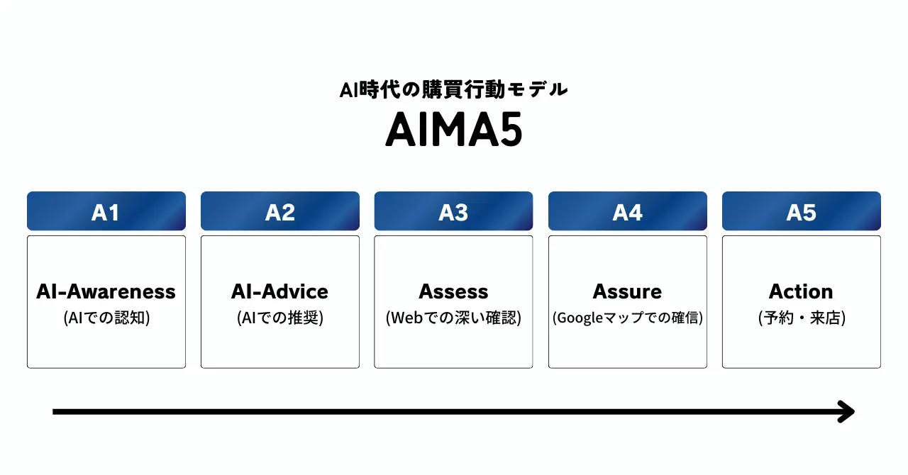 LLMO primeは、トリニアスが2025年12月に発表した購買行動モデル「AIMA5(アイマファイブ)」に基づいて設計されています。