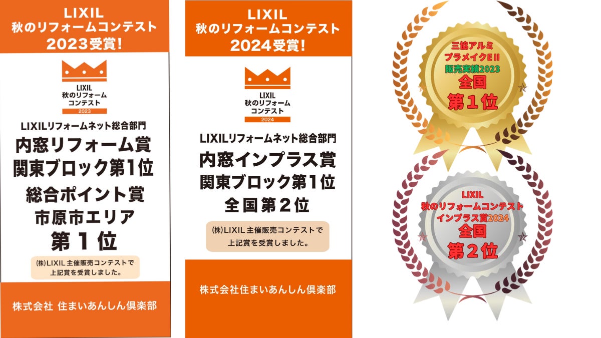 主要実績:LIXILインプラス売上全国2位、三協アルミプラメイク売上全国1位、累計施工実績1,500件以上