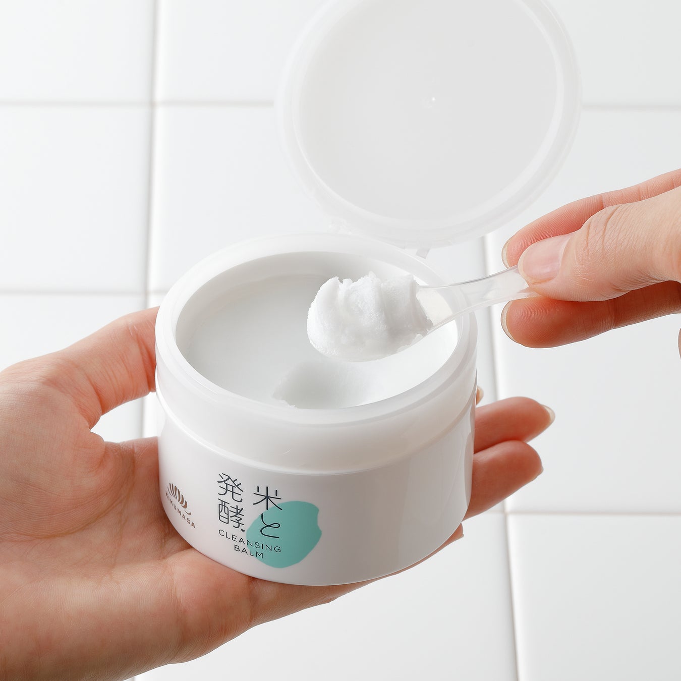 「米と発酵 クレンジングバーム」は、1つで5役(クレンジング・洗顔・毛穴ケア・マッサージ・洗い流しパック)の多機能クレンジング。 汚れ吸着成分「モロッコ溶岩クレイ」をプラス配合した固形のバームが、肌の上でなめらかにとろけて【メイク・毛穴角栓・黒ずみ汚れ】を浮かせてするんっと落とします。