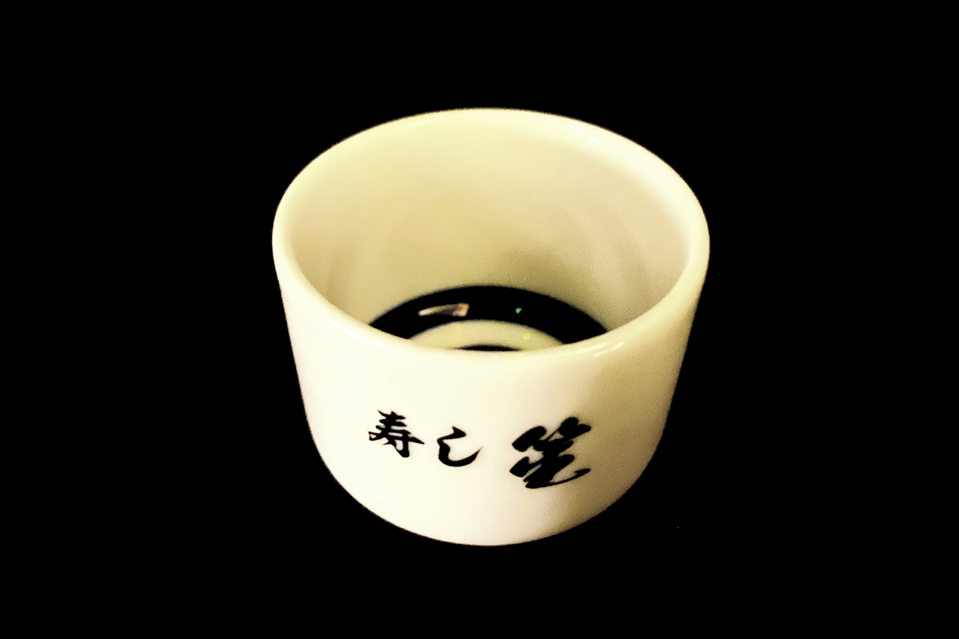 このおちょこは「マイおちょこ」としてご利用いただき、次回以降、ご持参のうえ寿し笙にご来店をいただくと、お好きな日本酒を一合利き酒いただけます。