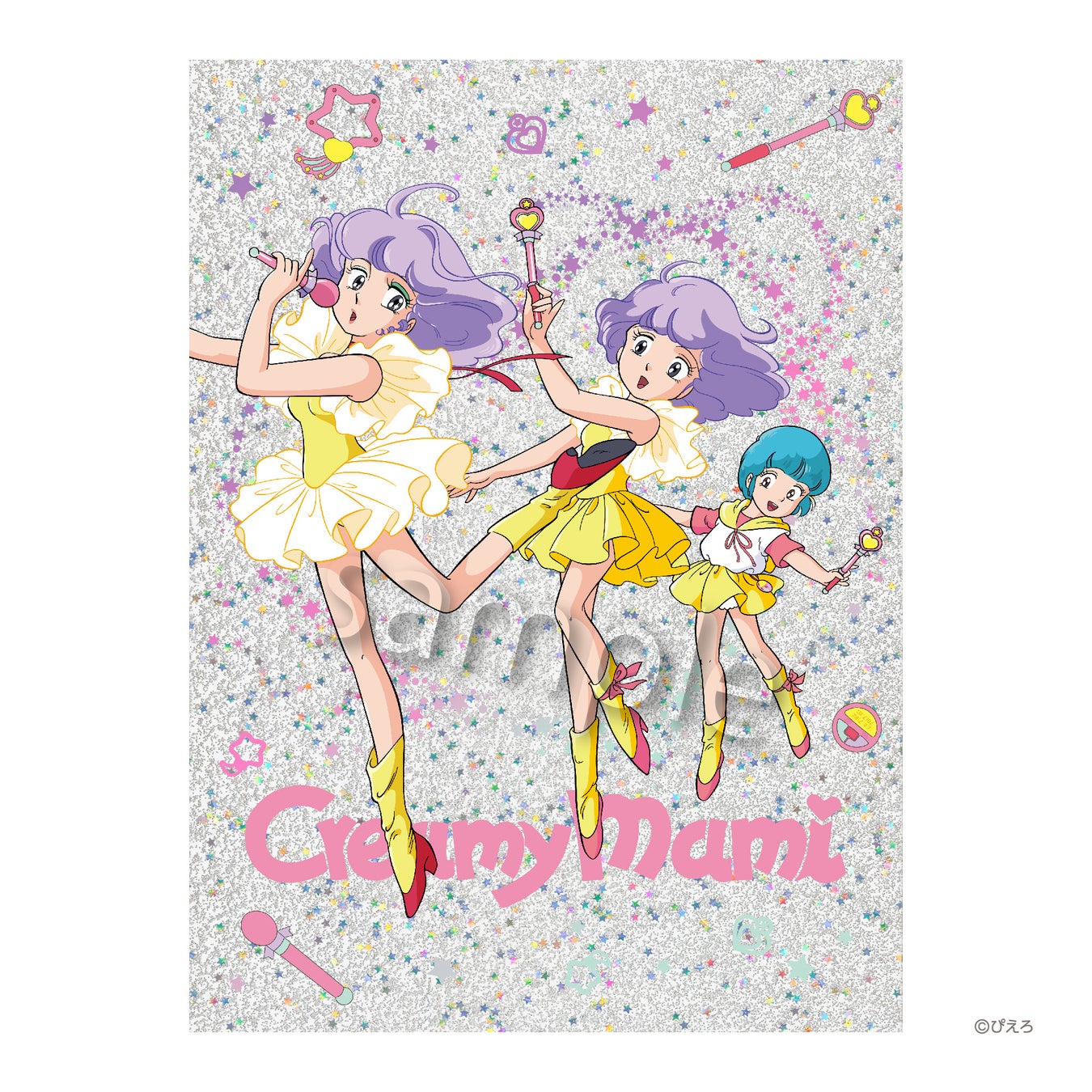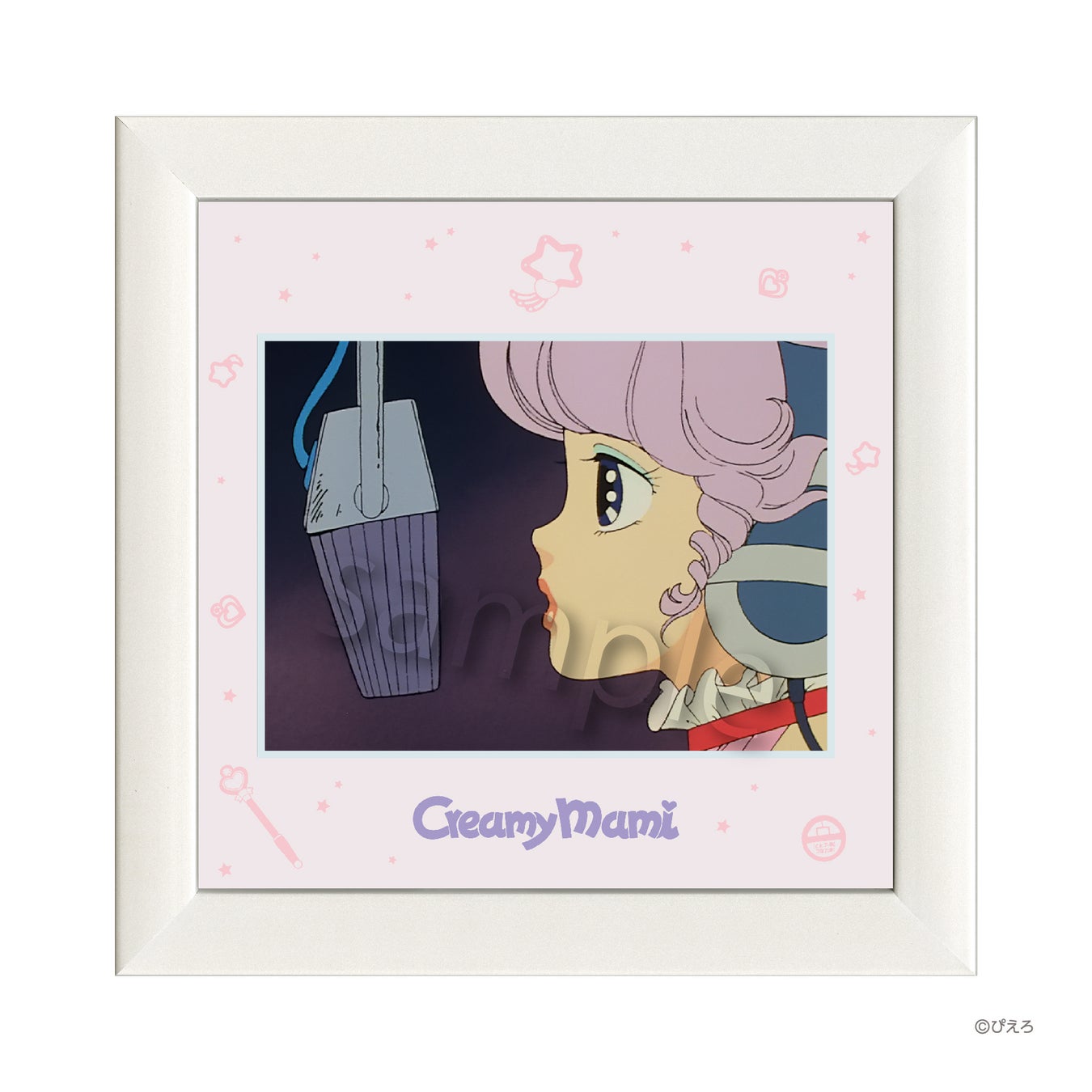 テレビアニメの人気イラストを用いたアクリルアート。ベースにキラキラ輝くラメ仕様のアクリルを使用することで、クリィミーマミのポップなおしゃれさを表現しました。