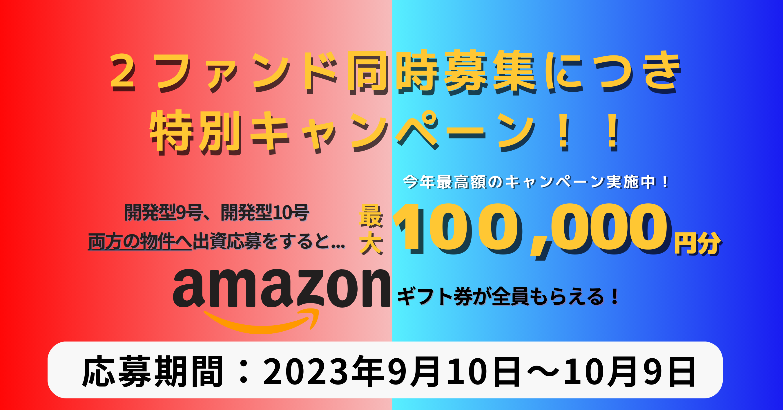 9号、10号両方の合算出資額が200万円以上の場合、最大で100,000円分のギフト券がもれなくゲットできます!