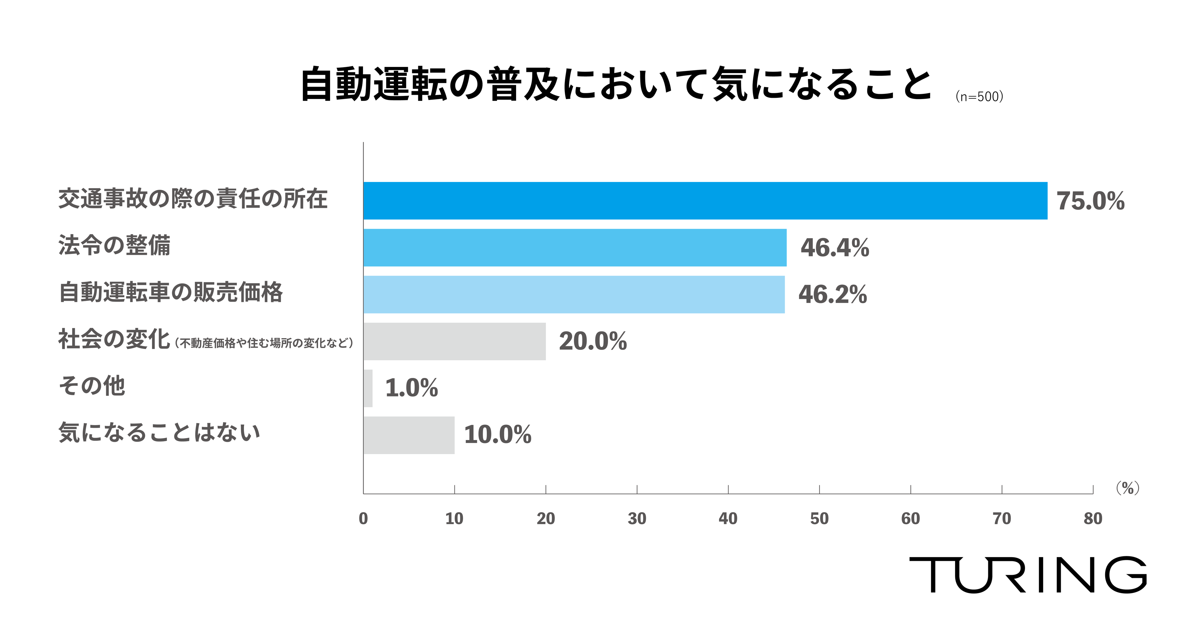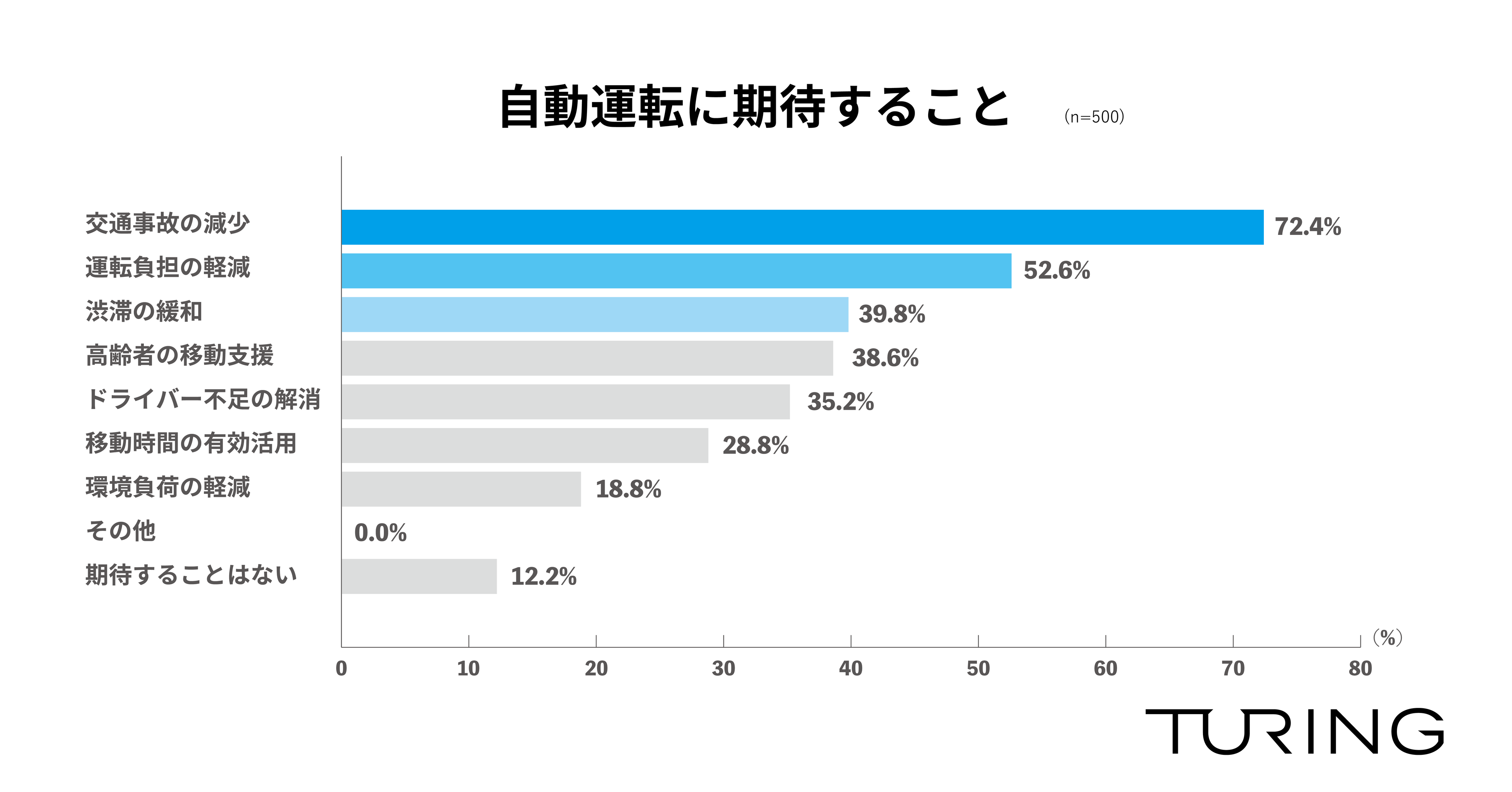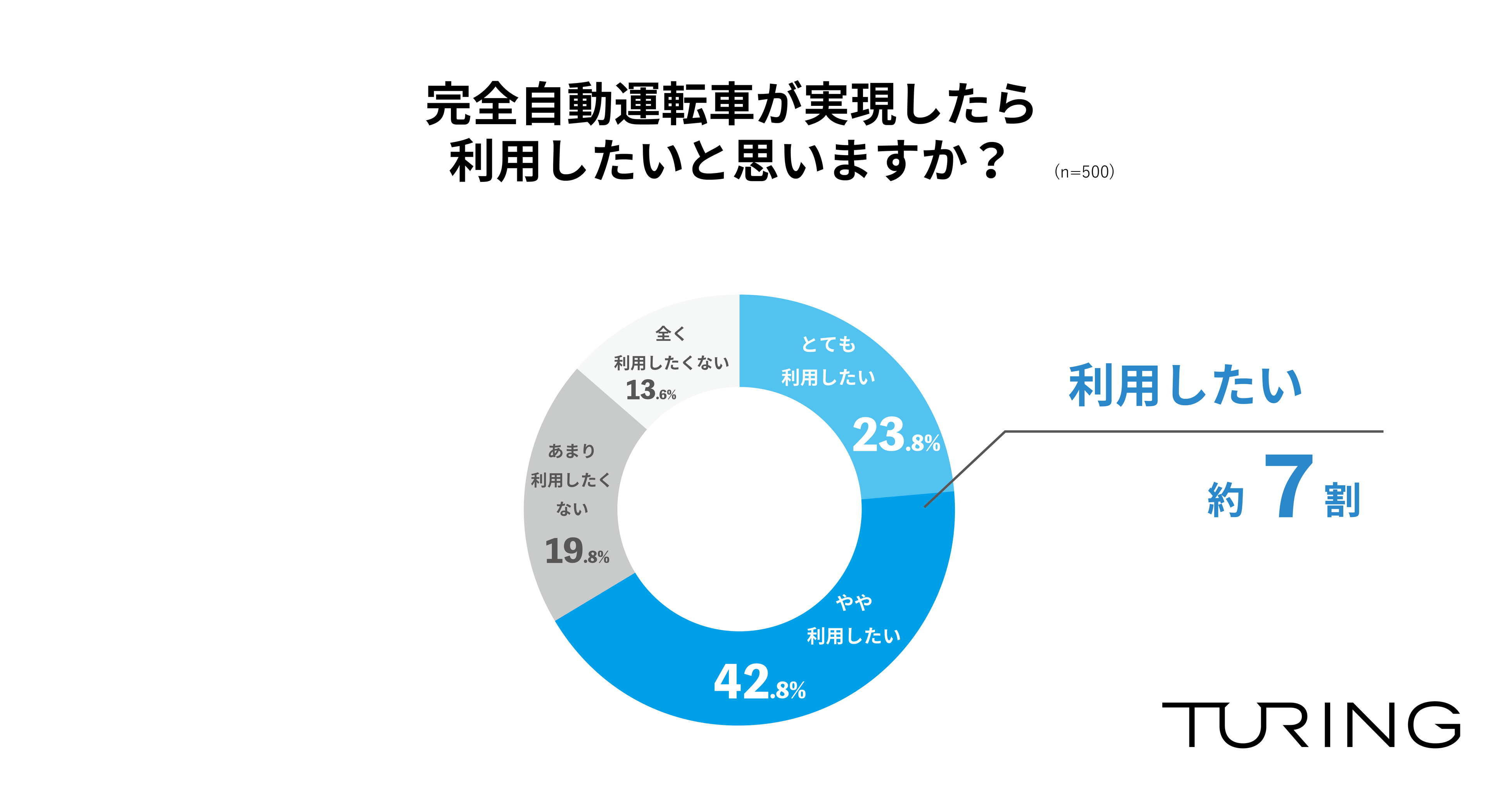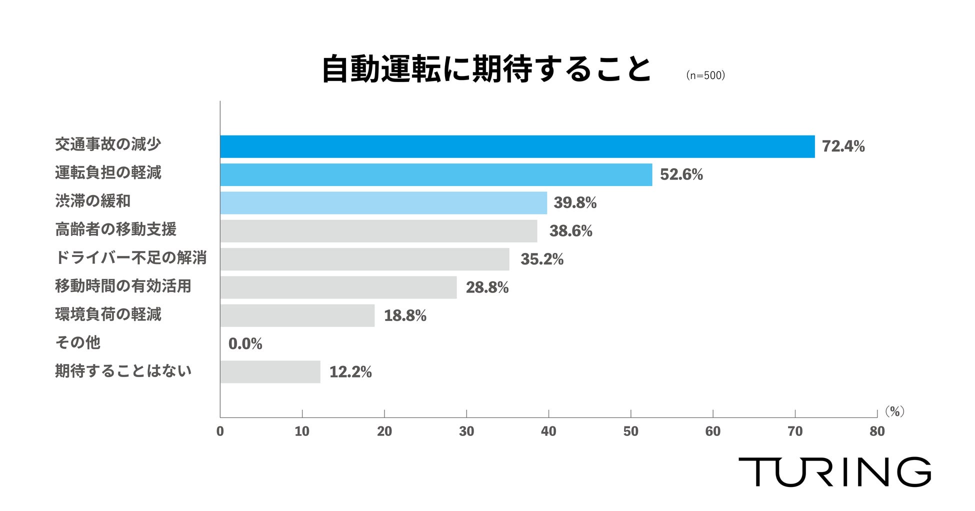 完全自動運転車両の開発・販売に取り組むTuring株式会社(千葉県柏市、代表取締役:山本 一成、以下「チューリング」)は、全国の運転免許を持っている人を対象に「自動運転に関する調査」を実施し、500名から回答を得ました。