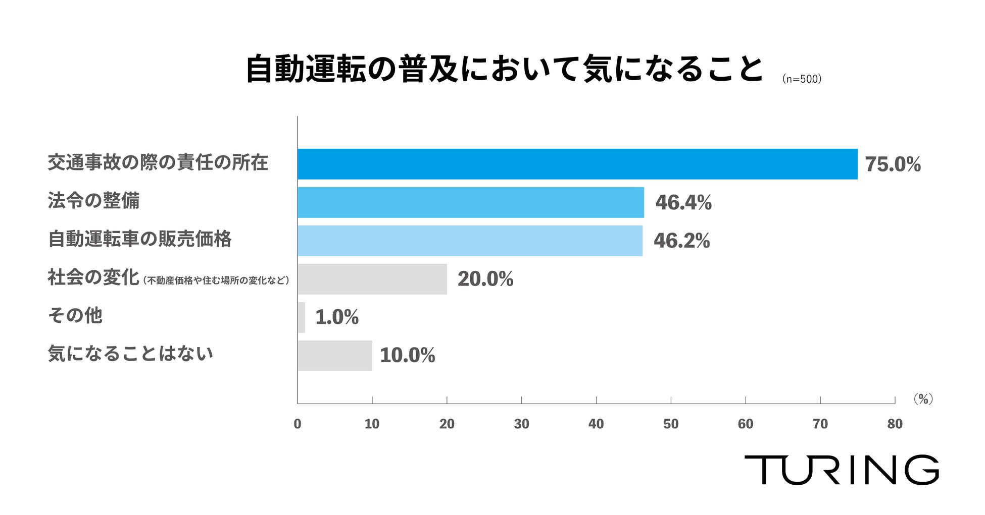 - 自動運転の普及において気になることは「交通事故の際の責任の所在」が最多