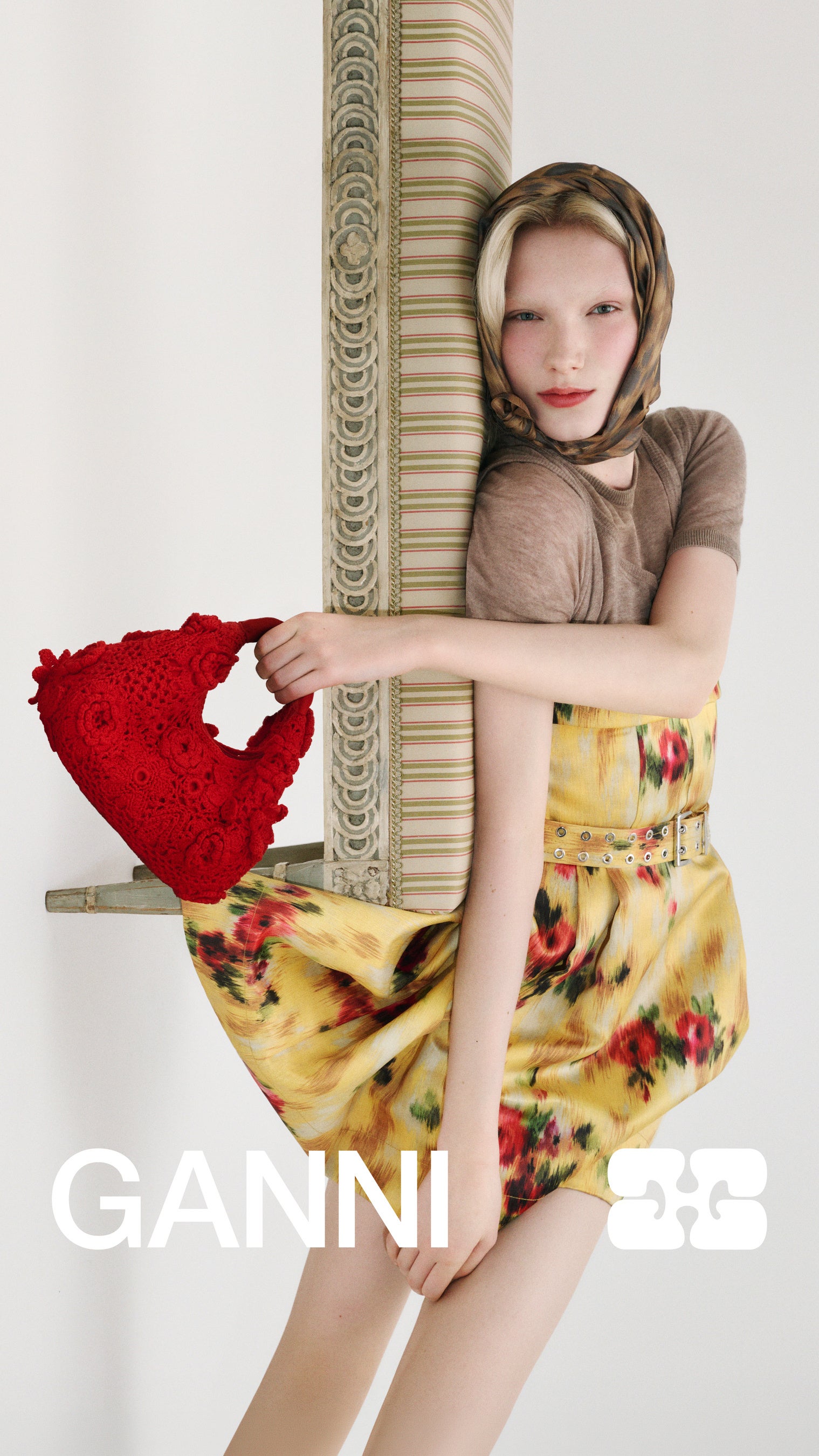 パッチワークや大胆なカラーリング、フローラルやレオパードなどのシグネチャープリントを通して、遊び心あふれるGANNI Womanのワードローブを提案いたします。