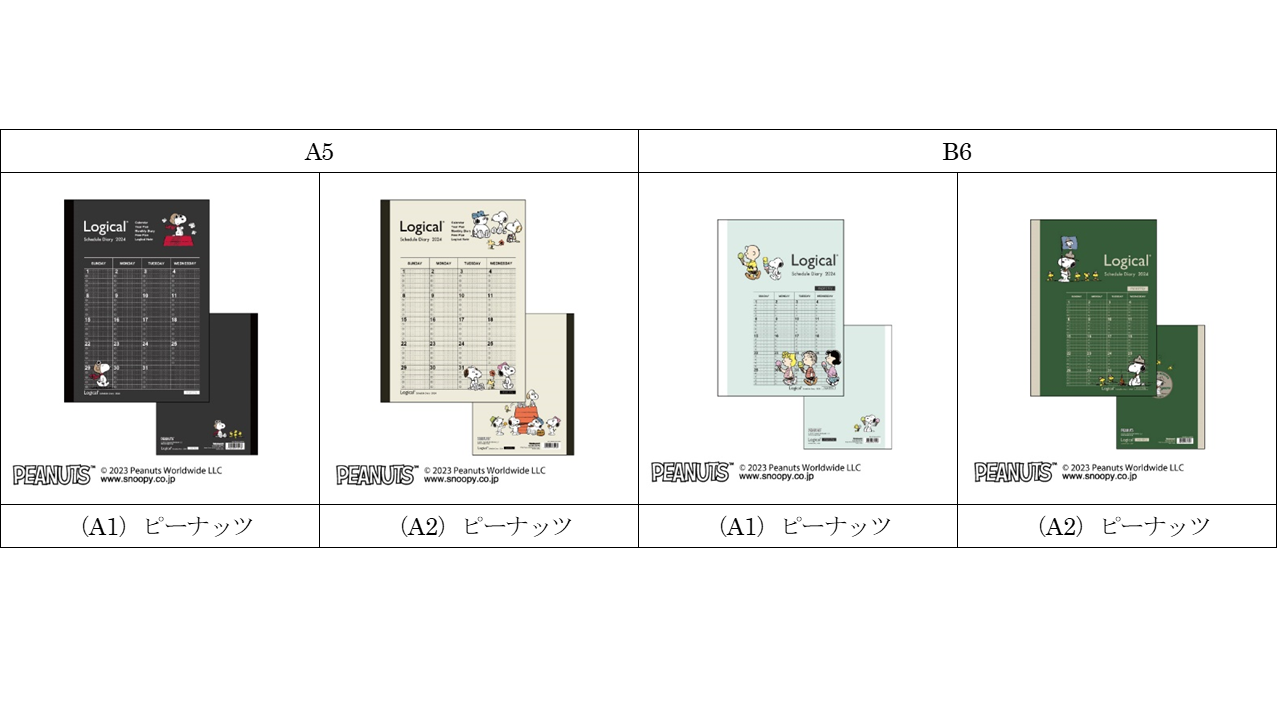 この度『ロジカルダイアリー2024 月間ノートタイプ』の表紙に、人気キャラクター2種のデザインを起用し、2024年版としてラインアップを拡充しました。本体サイズはA5サイズとB6サイズの2種展開でサイズごとに違うデザインを起用。ディズニー(4品番)、ピーナッツ(4品番)の多種多様な8品番からお気に入りを選べます。