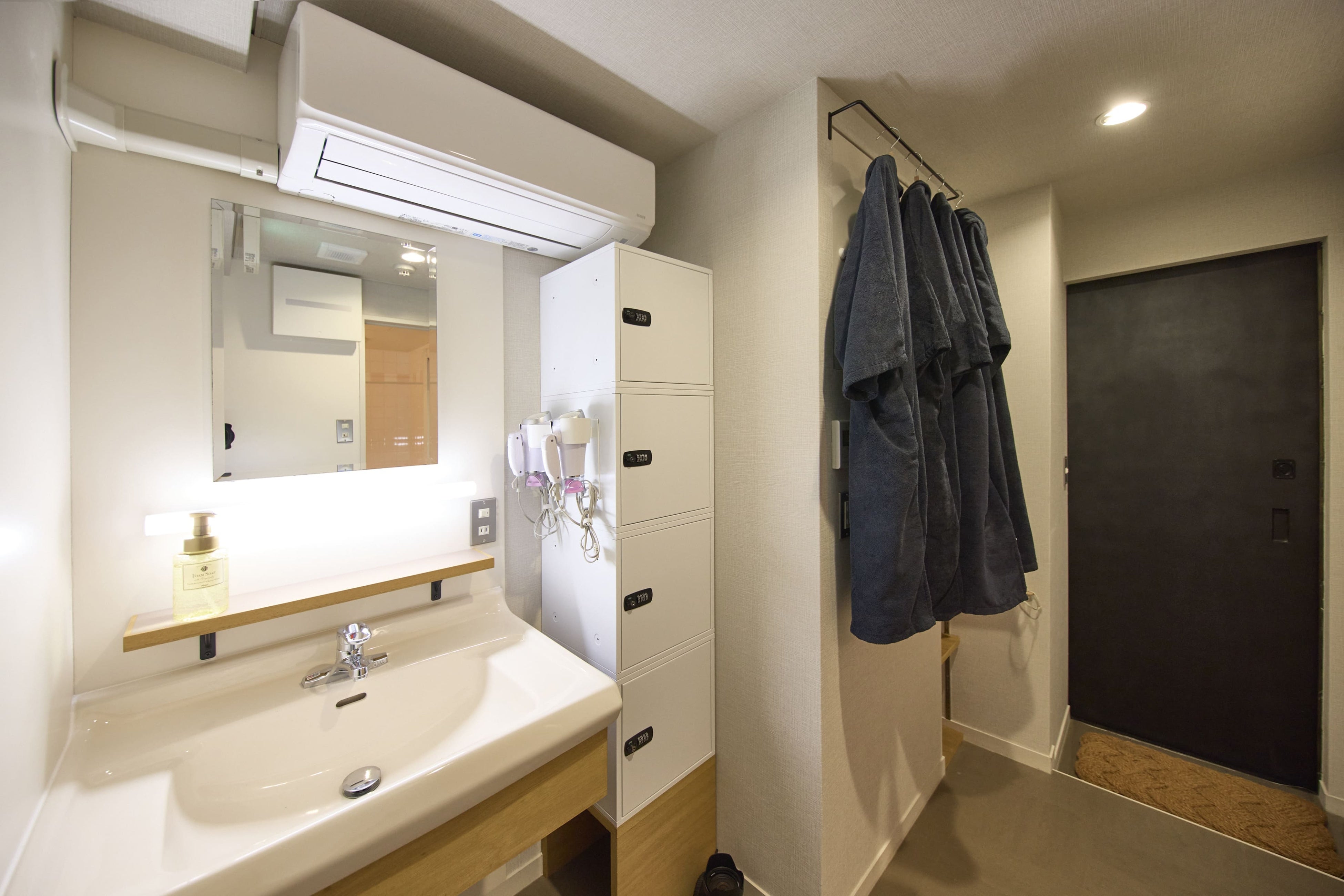 サウナ予約者専用のお風呂・シャワー・トイレ併設のパウダールームを増築し、着替えスペースとして、サウナ後の身だしなみを整えるスペースとしてご利用いただけます。