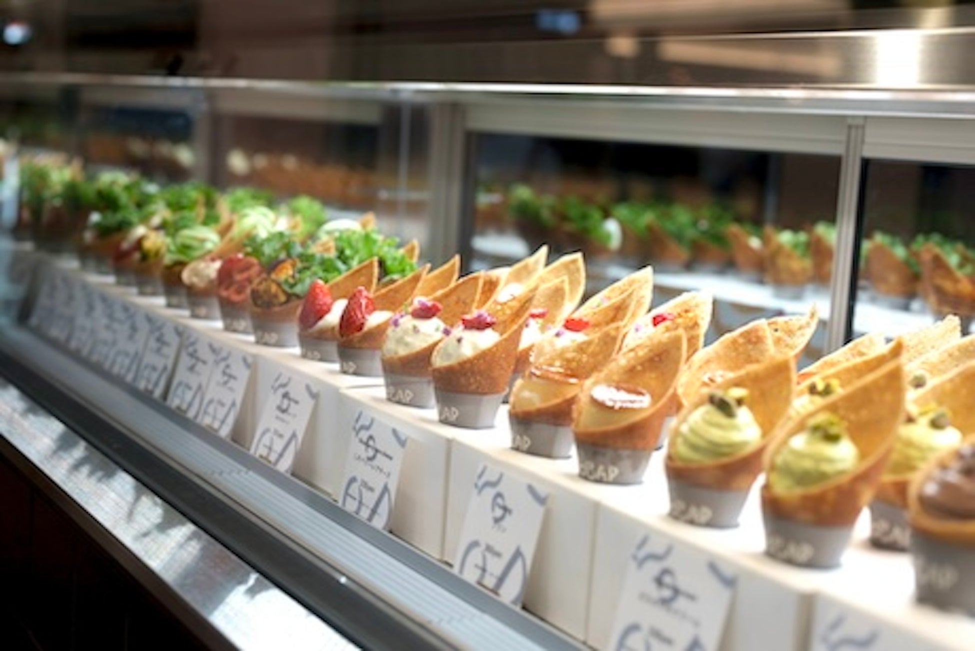 店舗の立地からインスピレーションを受け、“TOKYO”をキーワードに洗練された店構えを実現し、手のひらサイズのそば粉クレープをイメージした愛らしいネーミングやロゴデザインにもこだわりが光ります。