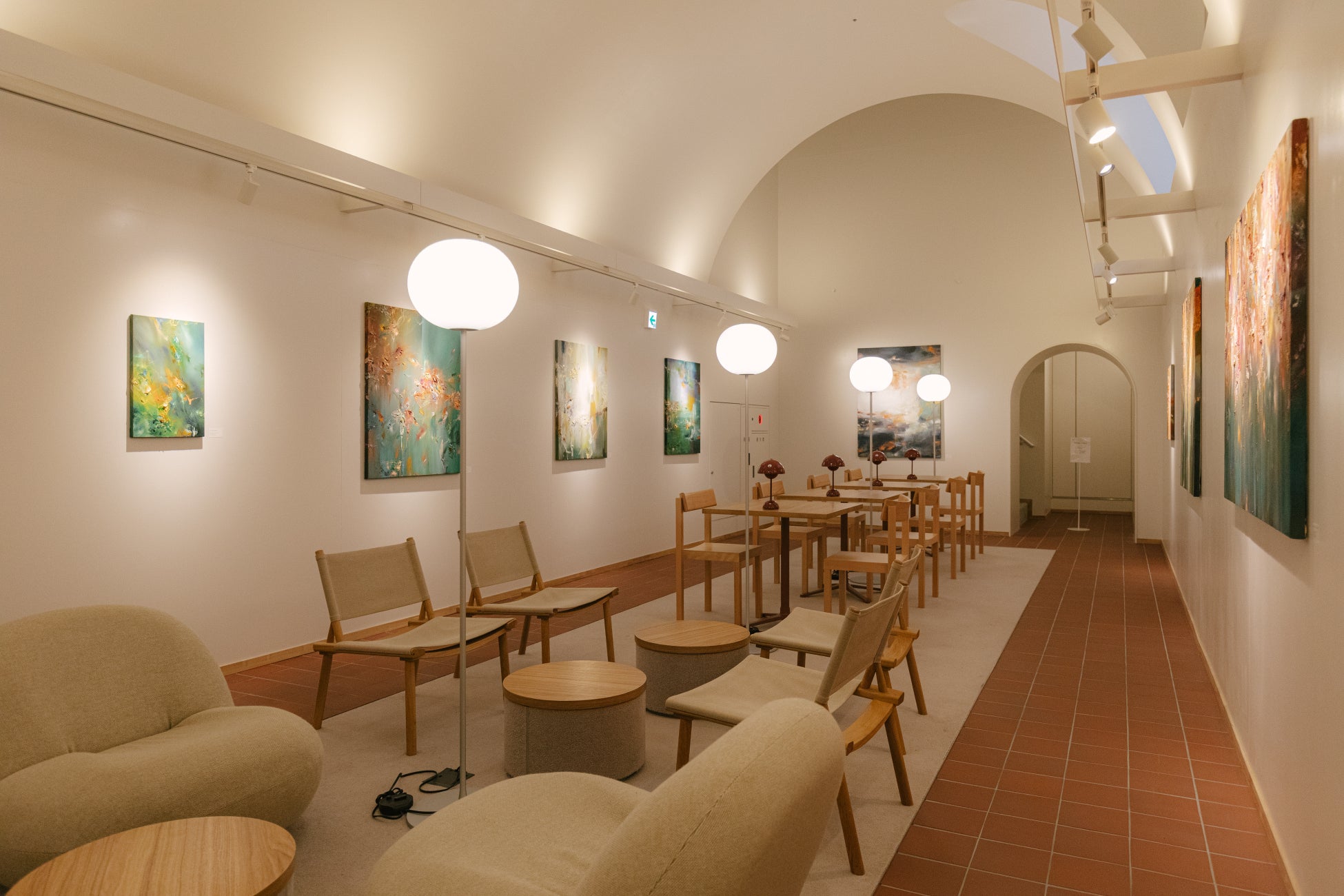 今回は、アートギャラリーEVERANDARTが手がける作品展示企画として、MEGURO MARC HALLにて展開いたします。天井高と柔らかな光が交わる印象的なホール空間にて、キムが京都のTERRADA ART STUDIO滞在中に生まれた新作32点を発表いたします。
