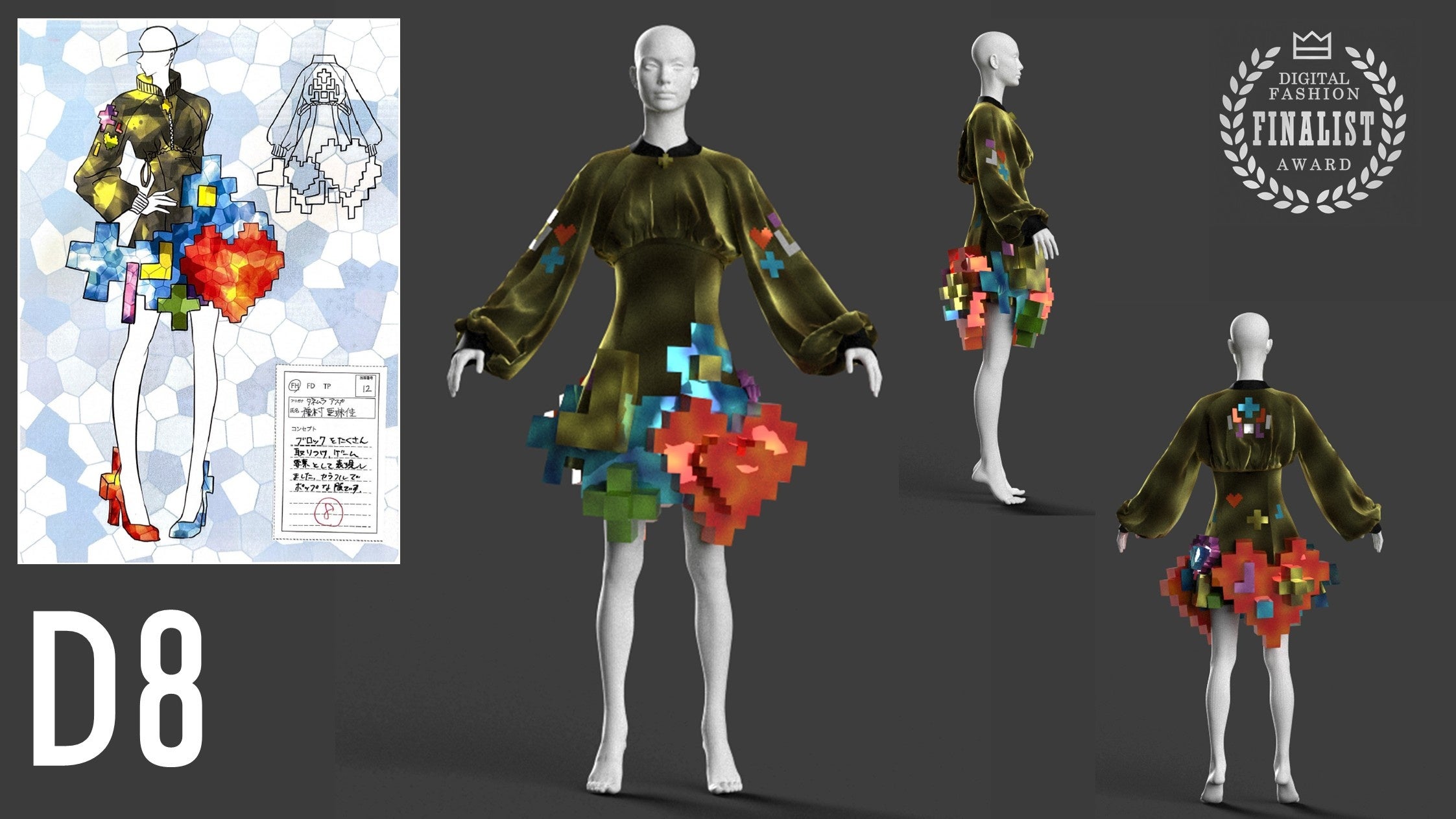 ピクセルやブロックを用いた構成はメタバース空間との親和性が高く、「デジタルファッションである必然性」が明確。ハートのテクスチャ表現も技術的完成度が高い点が評価されました。