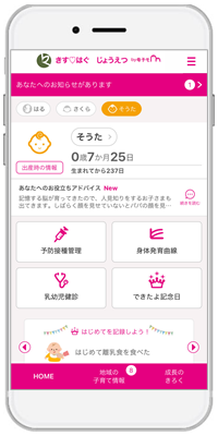 予防接種スケジュールの管理、お子さんの成長記録、動画・PDFにも対応した情報配信機能を最大限に活用しながら、妊娠期から出産、子育て期の皆さんに切れ目なく情報をお届けしてまいります。ぜひ新しいアプリをご利用ください。