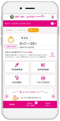 新潟県上越市に採用された『きす♡はぐ じょうえつ』は、スマートフォン・タブレット端末・PCに対応したサービスで、妊産婦と子どもの健康データの記録・管理や予防接種のスケジュール管理、出産・育児に関するアドバイスや、市からの地域の情報の受信、離れた地域に住む祖父母など家族との共有など、育児や仕事に忙しい母親や父親を助けてくれる便利な機能が充実しています。
