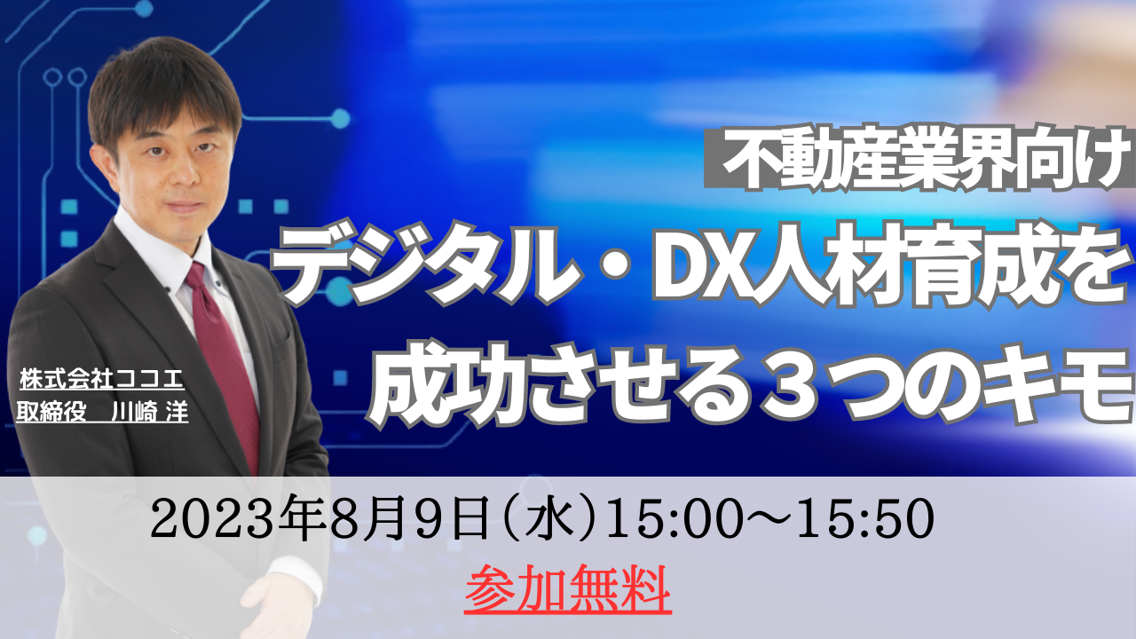 【参加特典付:無料オンラインセミナー】不動産業界向け「デジタル・DX人材育成を成功させる3つのキモ」(8/9開催)