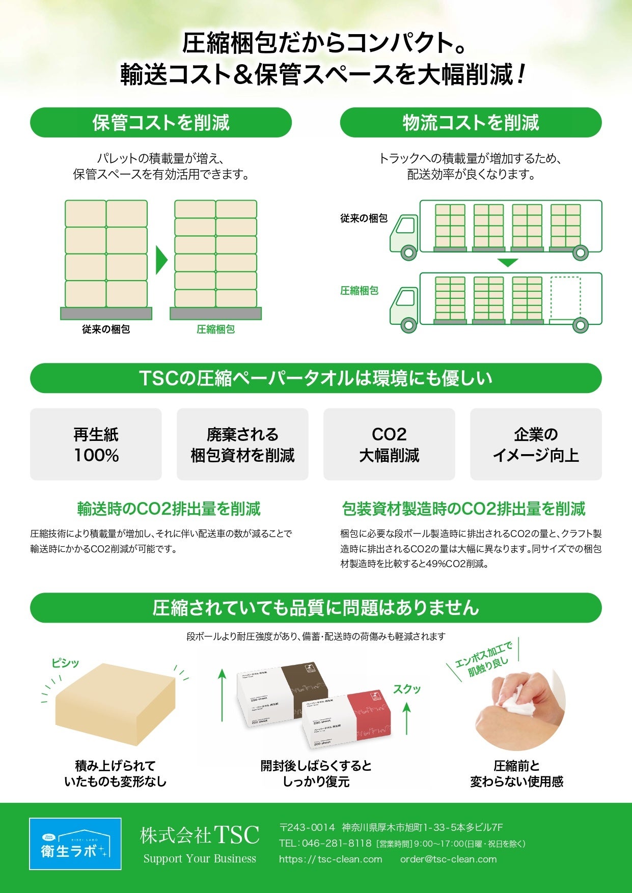 圧縮梱包のペーパータオルが10ケースにつき1ケースサービス!
