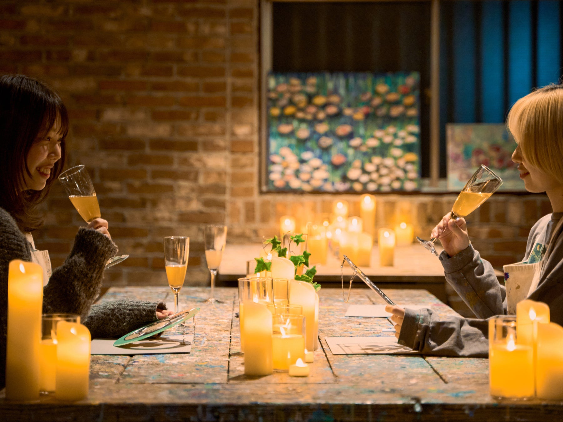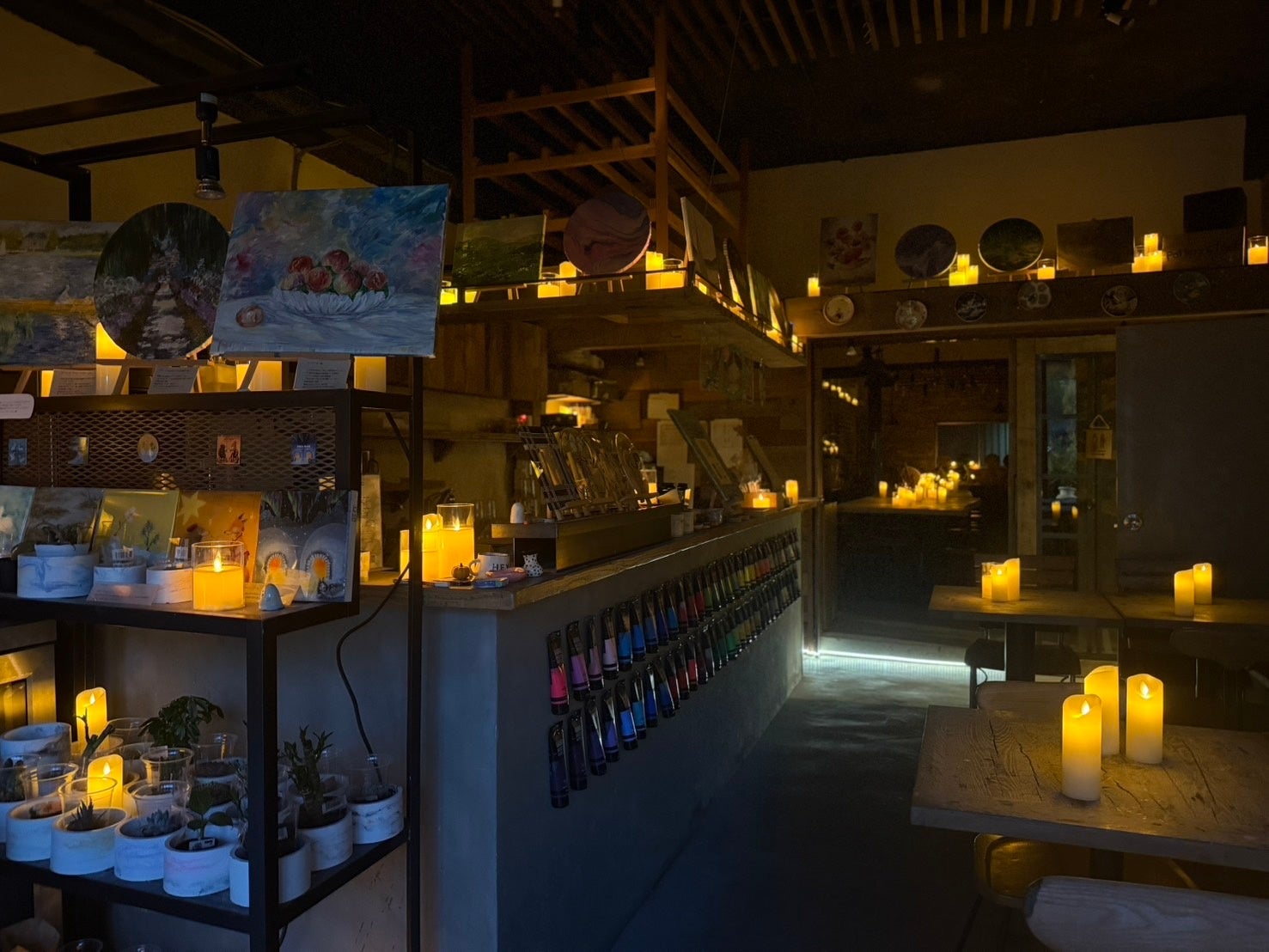 キャンドルが揺らめく幻想的な空間で、アートと向き合う時間をご提供いたします。日常に、小さな癒しと彩りを届ける夜のワークショップを開催中。