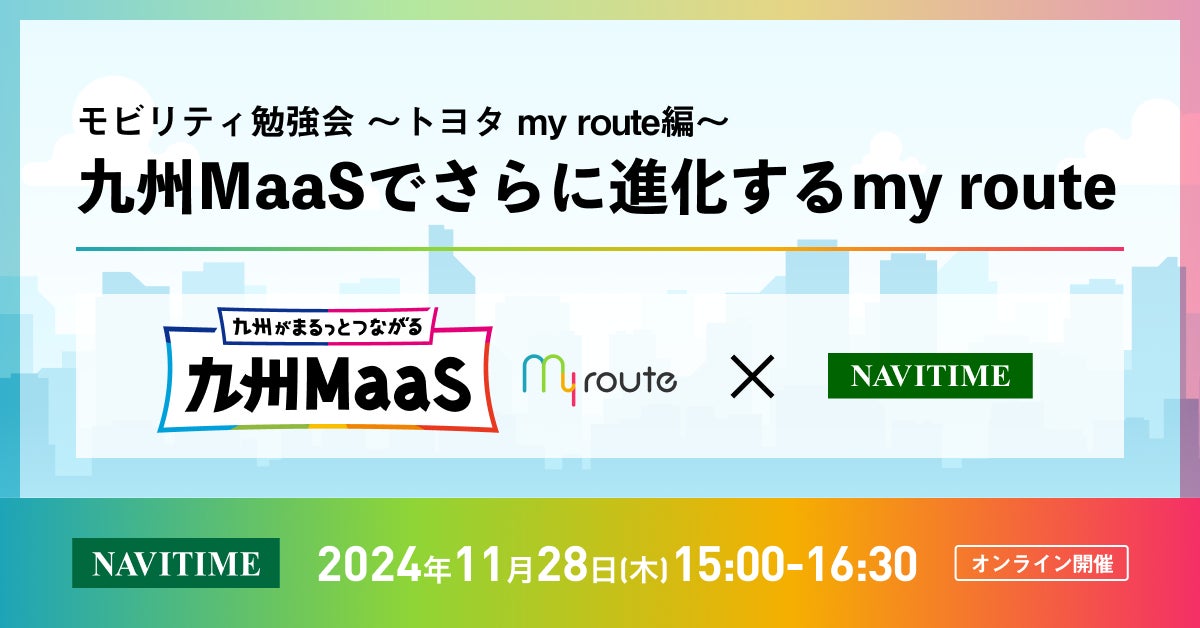 (株)ナビタイムジャパン様が開催する「モビリティ勉強会」で、my routeの「現在」と「これから」について、九州MaaSの現状をまじえて、お話させて頂きます。是非ともご参加ください。