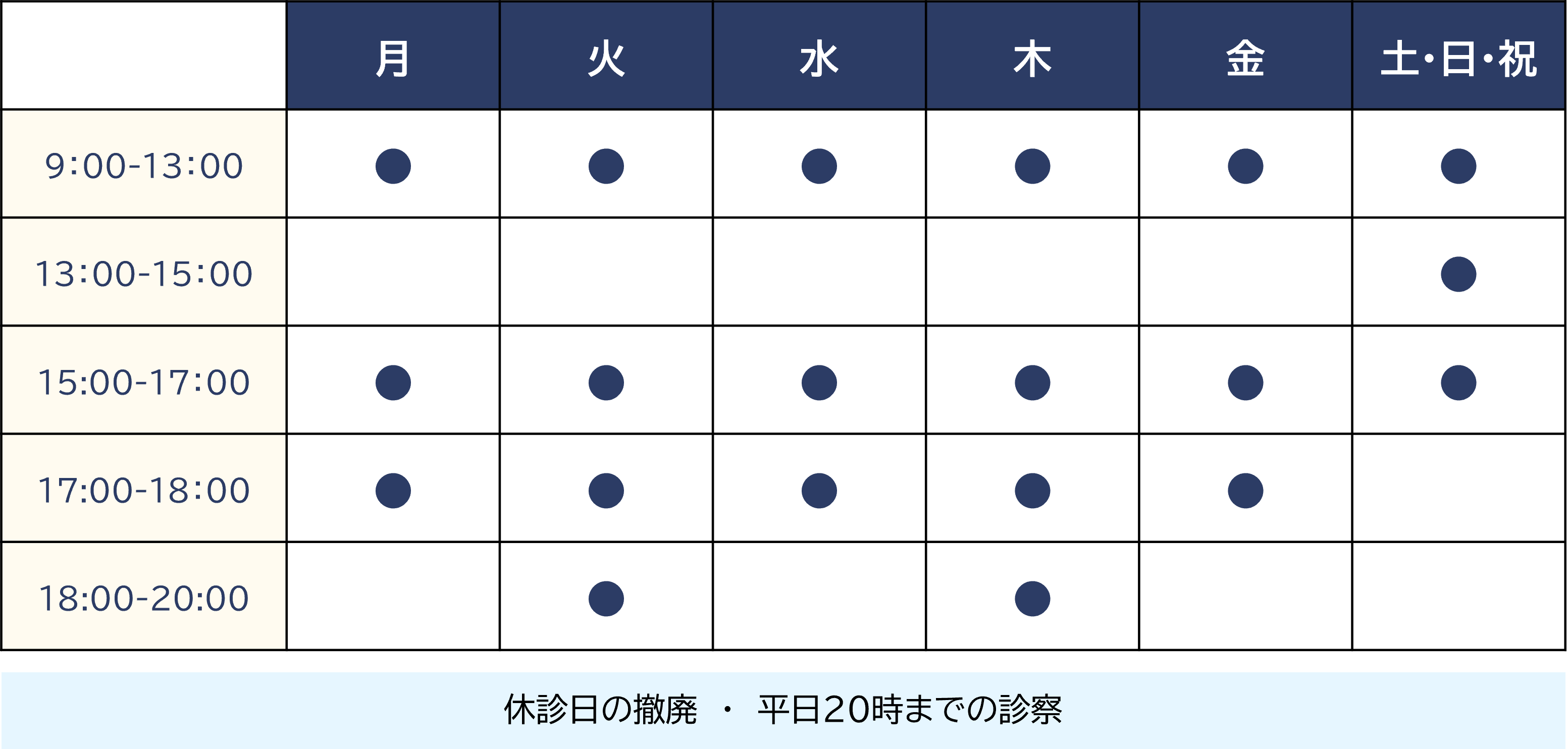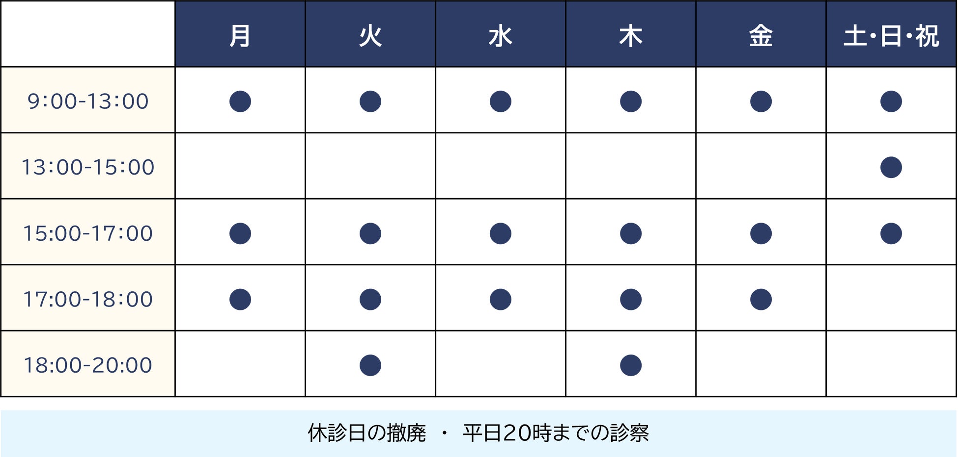 週7日を開院日としていて、仕事帰りに通院しやすいよう火曜と木曜に20時までの診療日を設定しています。