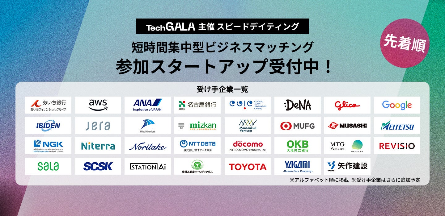 TechGALA2026が主催する、短時間集中型ビジネスマッチング「スピードデイティング」の参加スタートアップを募集しております。