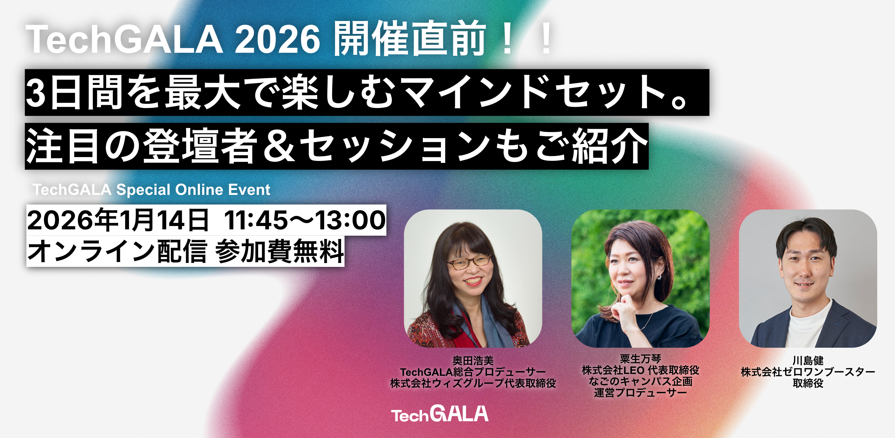 2026年1月27日(火)から29日(木)にかけて開催される「TechGALA Japan 2026」での注目のセッションやプログラムに参加する企業を紹介します。