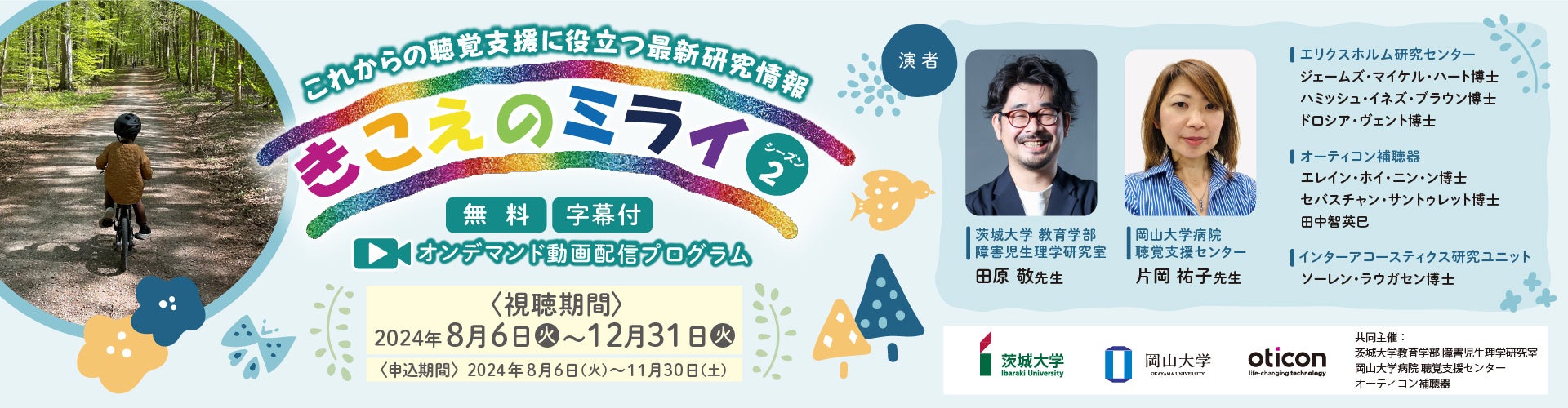 世界的な聴覚ケアグループ、デマントの補聴器旗艦ブランドである、オーティコン補聴器(本社:神奈川県川崎市、プレジデント:齋藤 徹、以下 オーティコン)、茨城大学 教育学部 障害児生理学研究室(茨城県水戸市)および国立大学法人 岡山大学(本部:岡山市北区、学長:那須保友)の岡山大学病院 聴覚支援センターは共同で、昨年11月から配信を開始したオンデマンド動画配信プログラム「きこえのミライ」の第2弾、「きこえのミライ シーズン2」を本日8月6日より配信します。