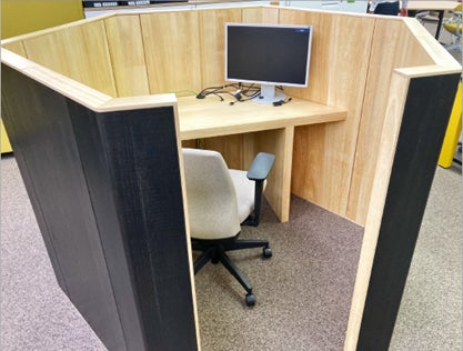 六角個人ブースは、六角の外枠で覆われており、作業に集中したい時やオンラインでの打合せ時などに最適なオフィス家具となっております。