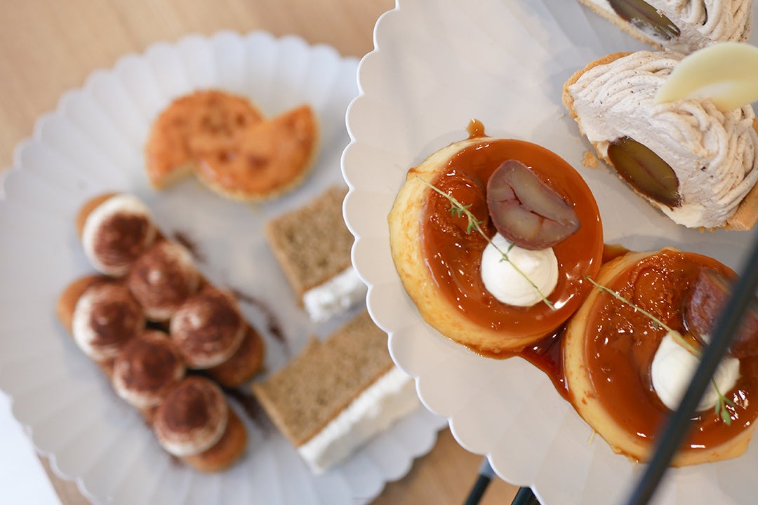 - 人気の自家製プリンやティラミスと季節限定スイーツが一気に楽しめる贅沢アフタヌーンティーセット