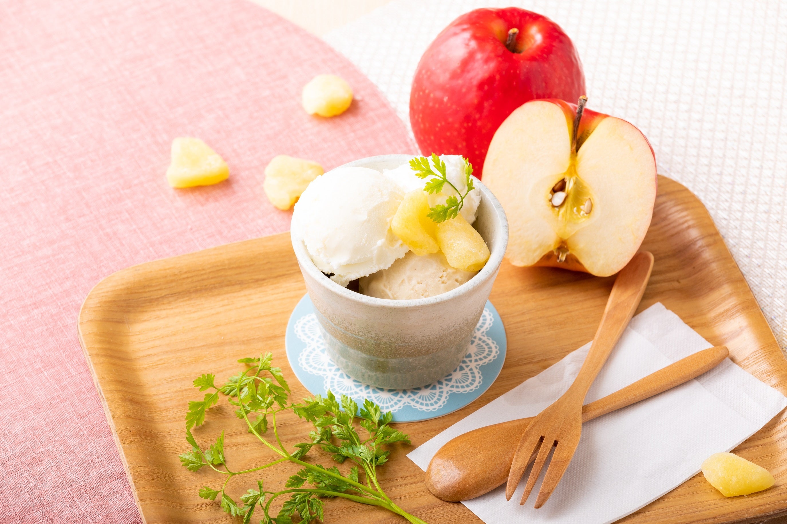 ミルク感たっぷりでコクのあるジャージーミルクアイスと家族亭のオリジナルそばアイスをそば猪口に盛付けたそばちょこぱふぇ。食後の一品にどうぞ。
