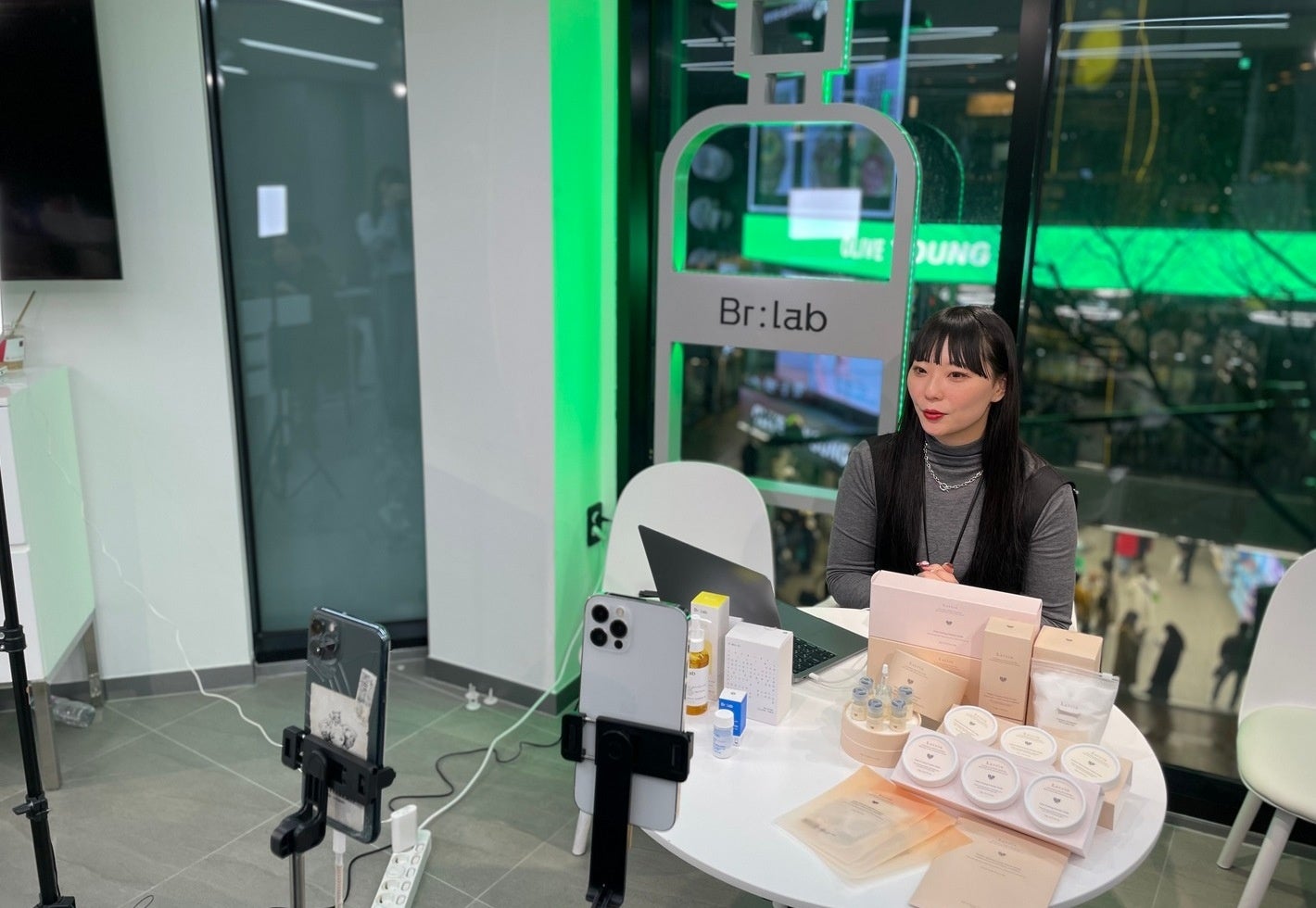 韓国の最新コスメを販売。ライブコマースの聖地として知られるスタジオから配信を行った。