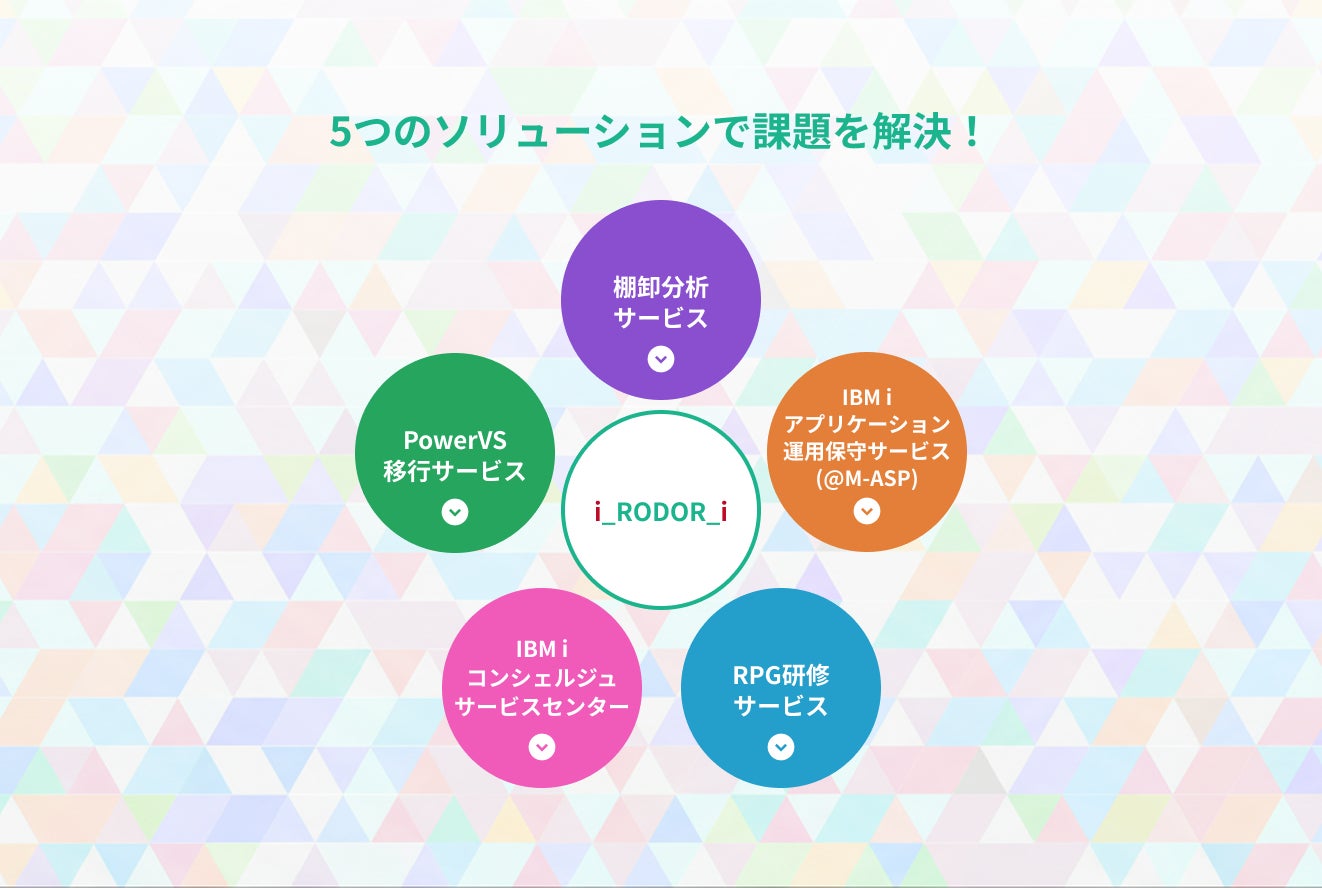 i_RODOR_iは企業のIBM i環境を総合的に支援するため、以下の5つのソリューションを中核として構成されています。