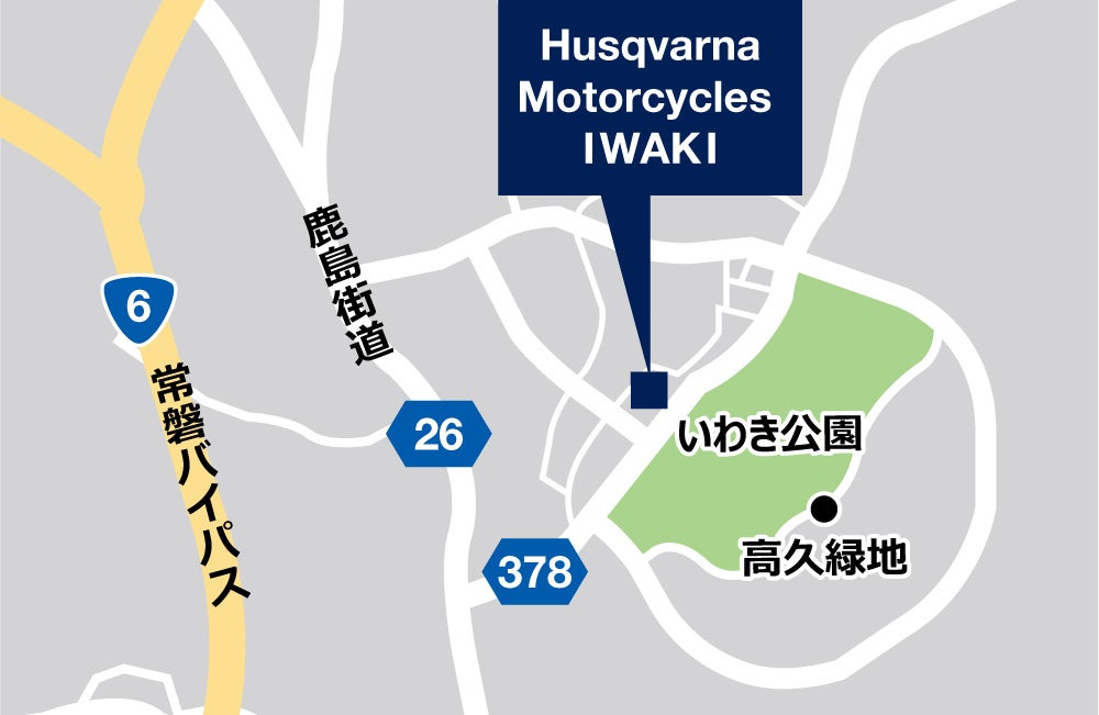 「Husqvarna Motorcycles いわき」は県道378号線に面するラパークいわき内に立地する、バイク王ラパークいわき店との併設となります。