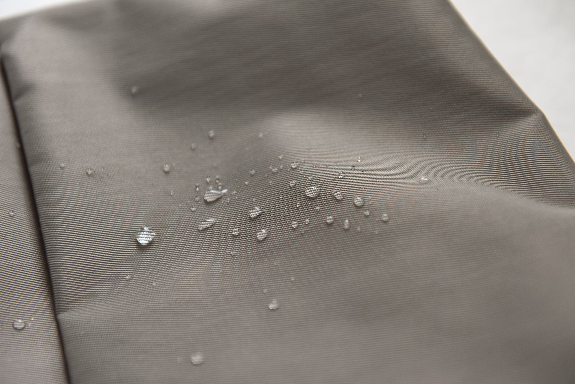 バッグ本体には、耐久性があるナイロン100%の素材を使用。生地自体に撥水力があるので、水が跳ねたり、飲み物や食べ物をこぼしたりしても、汚れにくくて安心です。