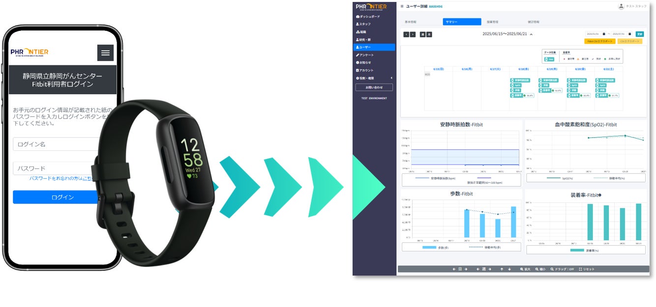 本研究を推進するにあたり全参加施設は当社の「PHRONTIER」を使用し、データ統括は静岡がんセンターが担当されます。ウェアラブルデバイスを含む多様なIoT(Internet of Things)機器から自動でデータを収集・統合管理できる機能を備えた「PHRONTIER」は、多施設共同研究で求められるデータの一元管理と、研究者・参加者の双方にとって直感的で使いやすいインターフェースが評価され、今回の採用に至りました。