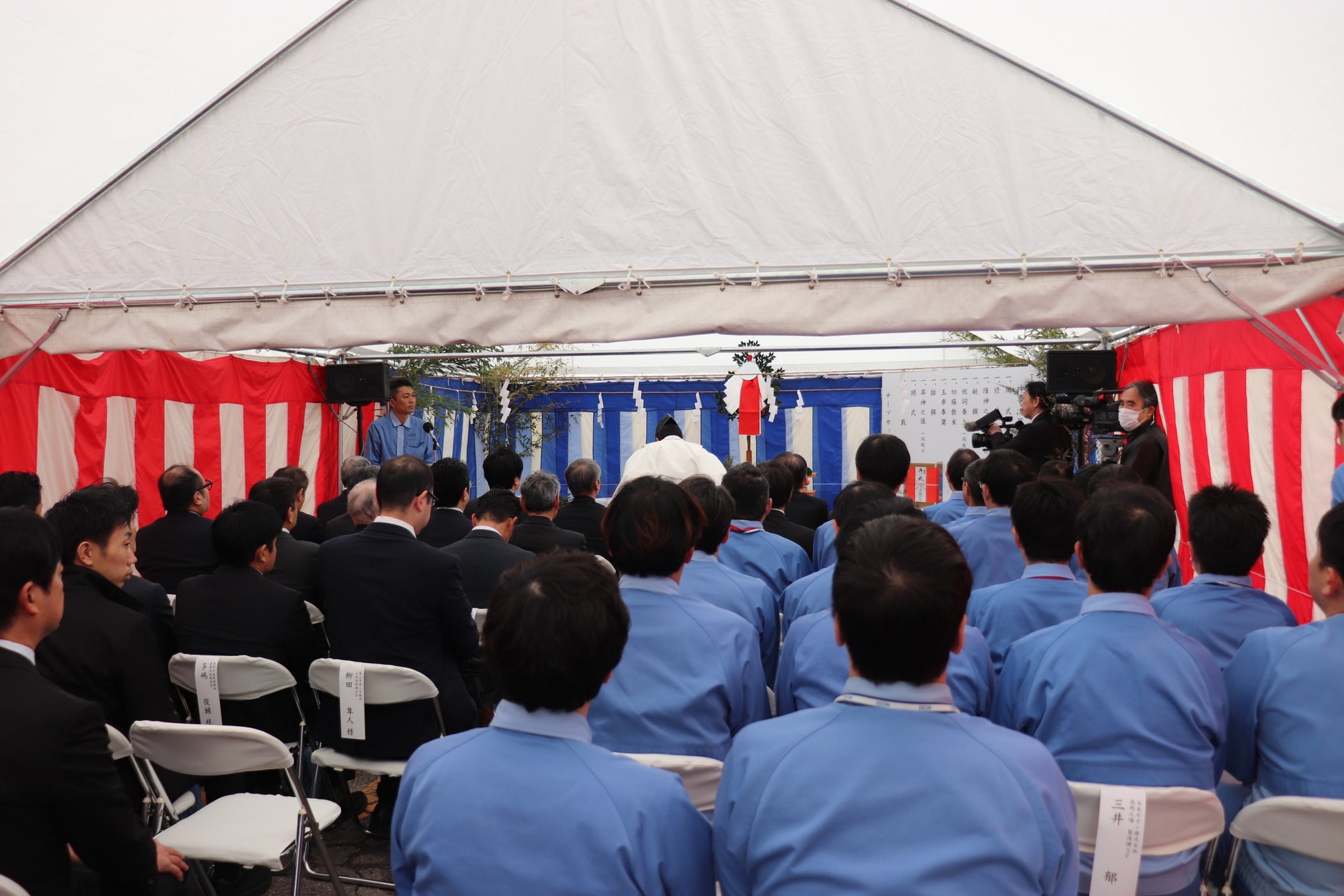 3月5日に現地で行われた竣工式には富山県および高岡市ならびに周辺自治会から来賓を招いたほか、施工関係者、また代表取締役会長 田中 公章、執行役員高岡工場長 小瀬 智之ほか当社関係者を合わせ、44名が参加しました。