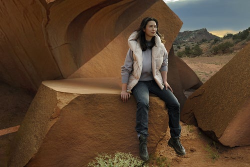 リーボヴィッツの特徴である照明の演出、ドラマチックなムード、ストーリー性のあるビジュアルが特徴的な「Live in the Open」キャンペーンでは、かつてオキーフが訪れた広大な土地のように力強いミューズ3名が、生き生きと表現されています。今シーズンのカナダグースのヒーロースタイルと、彼女たちが愛用しているワードローブを組み合わせたスタイリングで、それぞれの個性と自然との揺るぎない絆が、リーボヴィッツならではのポートレートスタイルで鮮やかに映し出されています。