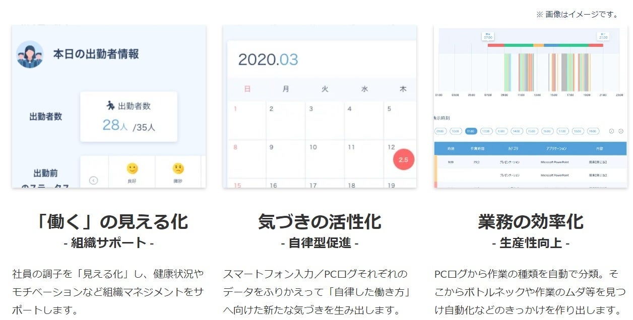 今回、様々な業種の働き方を分析することにより、「働き方」を変え、「働く」に関わる人の幸福度を上げることを目的に、函館市経済部工業振興課にPCログを取得し働き方を可視化する「WORKS.REPORT(働き方レポート)」が実験的に導入されました。NRMにてアプリケーションの提供、ワークラボ函館では取得したデータを分析し、働き方に関する「気づき」を検証してまいります。