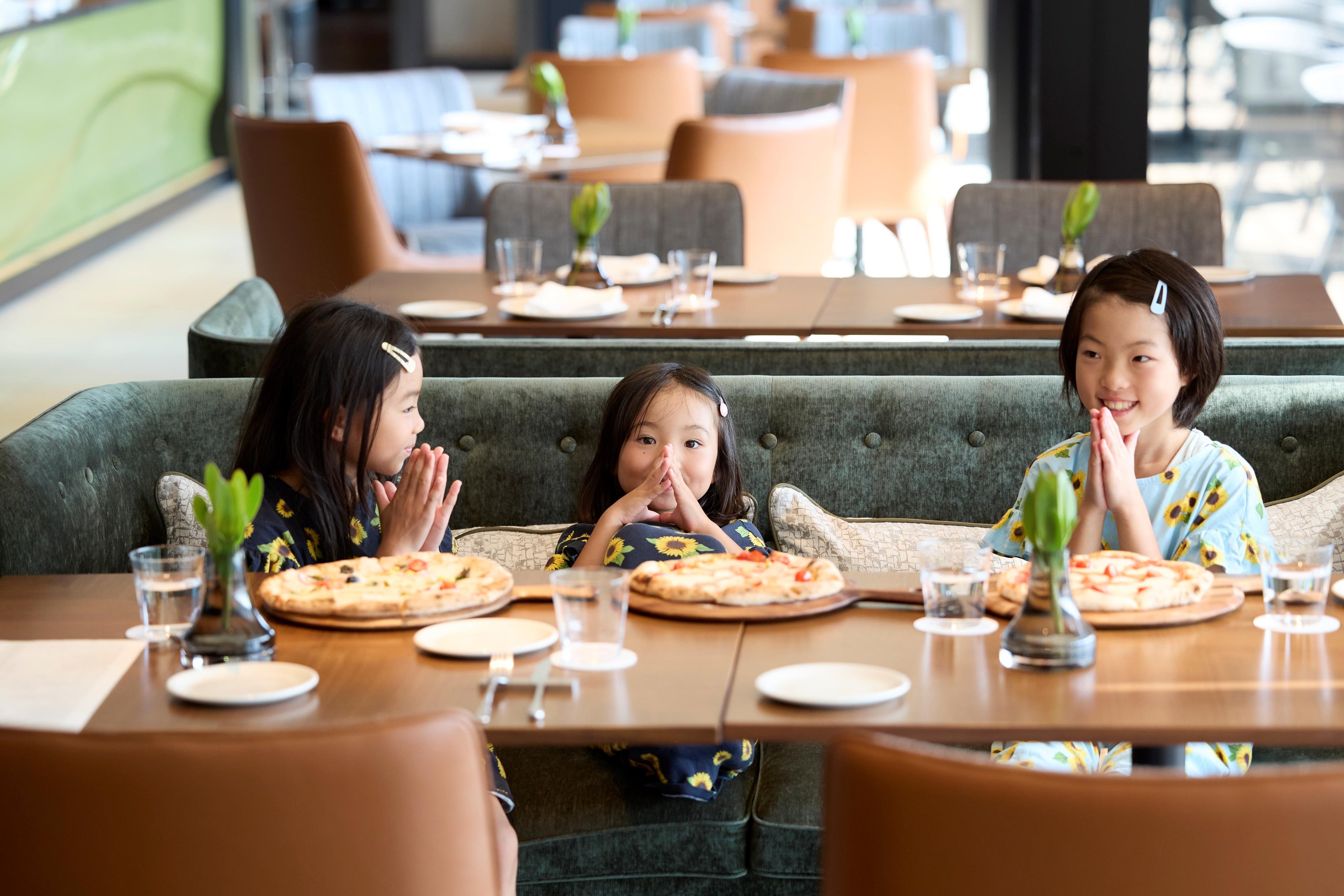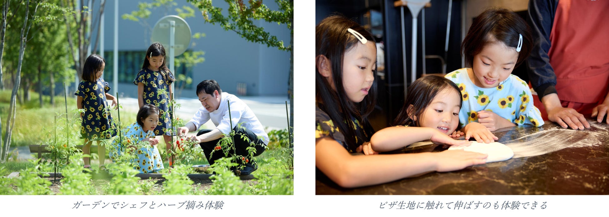 本格的な石窯で焼くピザが好評の「TROFEOイタリアン」では、昨年大好評をいただいたピザ教室を今年も開催いたします。まず、ホテル敷地内の「シェフズガーデン」でシェフと共にハーブを収穫し、SDGsの目標である「つくる責任 つかう責任」を実感していただきます。特にお子様にとっては、貴重な食育の機会となります。その後、キッチンに移動し、ピザ生地を丁寧に伸ばし、摘みたてのハーブや地元農家から仕入れた新鮮な夏野菜、コーン、ツナ、ハムなどを自由にトッピングし、オリジナルピザを作り上げます。使用するチーズは、総料理長の石井順が「食べる牛乳」と絶賛する、富士山麓で生産された七富チーズ工房のモッツァレラチーズです。400℃の高温の窯で焼き上げた香ばしいピザと、ソフトドリンクを楽しみながら、家族と一緒に楽しいピザパーティーをお楽しみください。