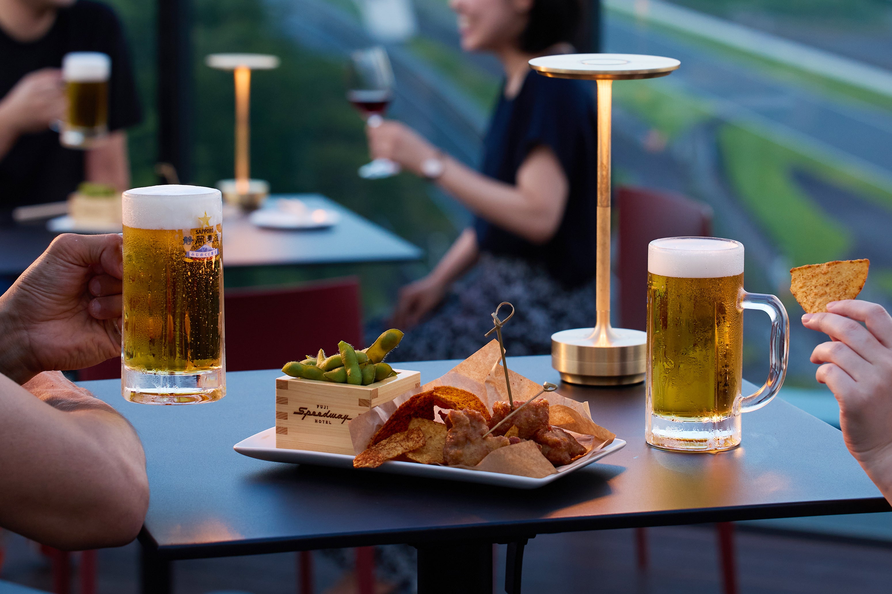 2024年7月13日(土)から9月13日(金)まで、ホテル最上階の屋外テラスにて「ルーフトップビアガーデン」を開催いたします。当ビアガーデンでは、富士山と国際サーキット「富士スピードウェイ」の壮大な景色をお楽しみいただけます。90分の飲み放題制となり、料金にはおつまみの盛り合わせも含まれています。また、追加オーダー用として、静岡ならではの富士宮やきそばやしらすピザなどのアラカルトメニューもご用意しております。心地よい風が吹き抜けるテラスで、唯一無二の絶景を眺めながら、お手頃価格で楽しめるビアガーデンをお楽しみください。
