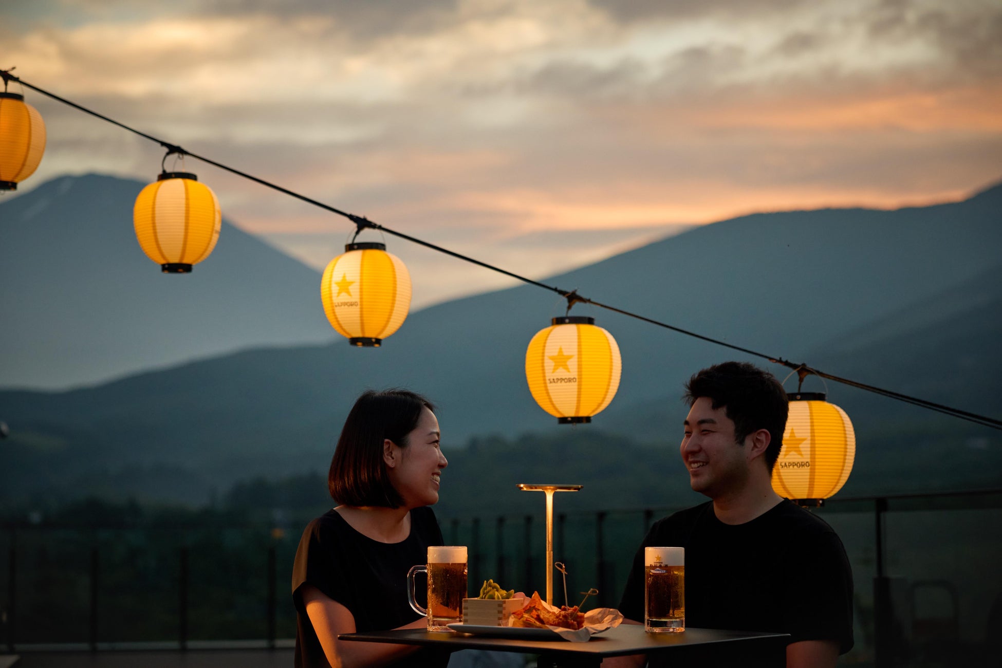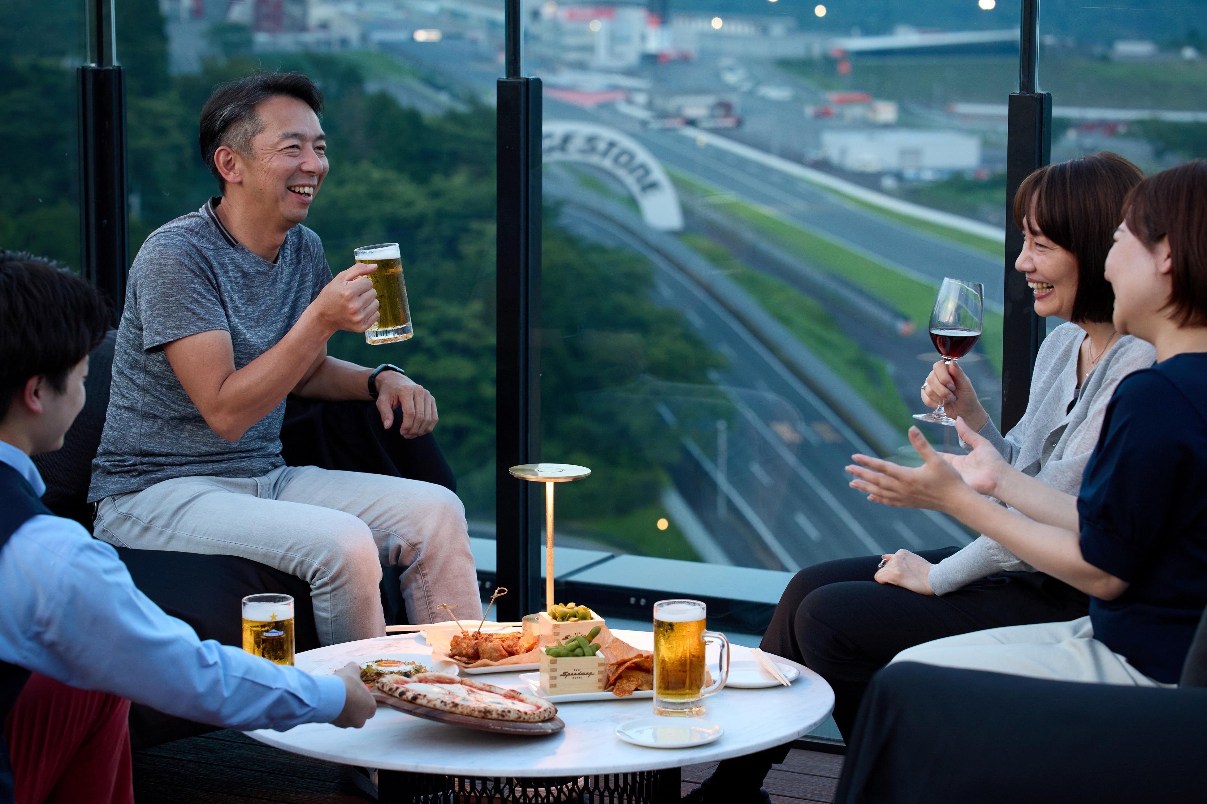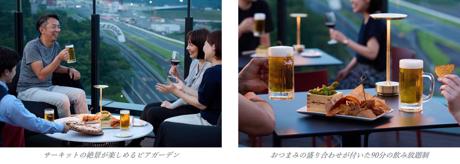 富士山とサーキットを望む「ルーフトップビアガーデン」