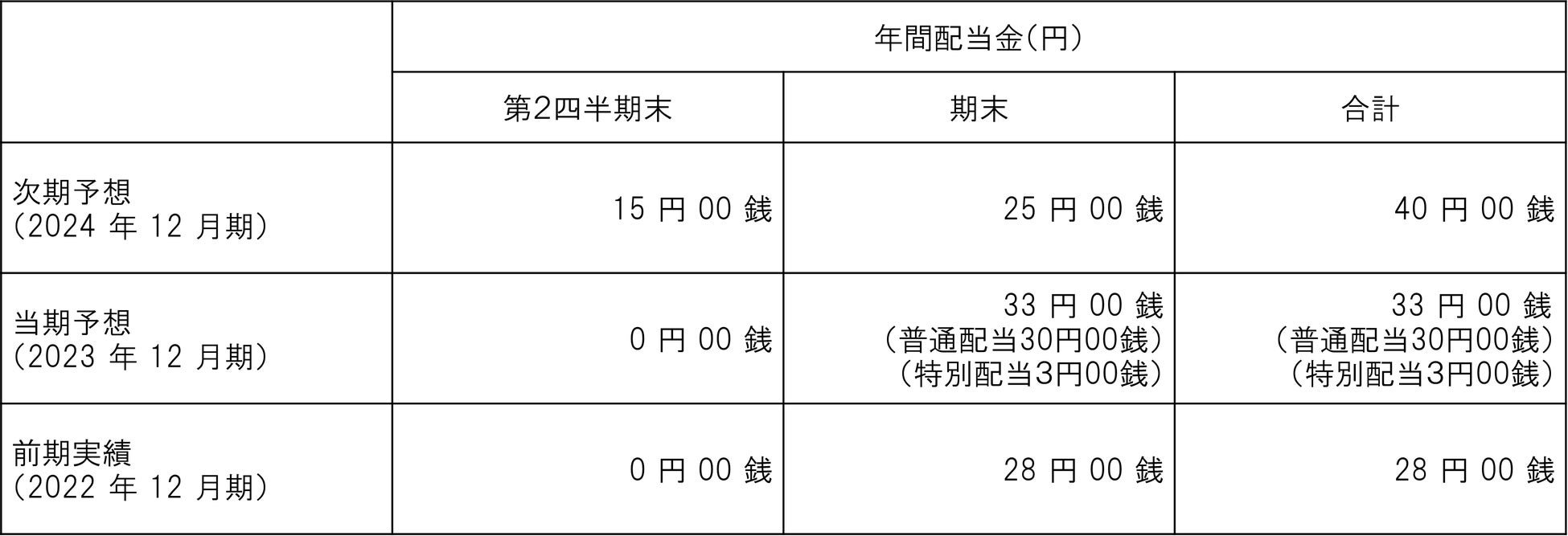 この方針に基づき、2023年12月期までは年1回の期末配当を実施する予定ですが、安定した期末配当の継続に加え、株主の皆様への利益還元の機会を充実させ、株式を継続して保有していただくことを目的として、2024年12月期より中間配当を実施することといたしました。
