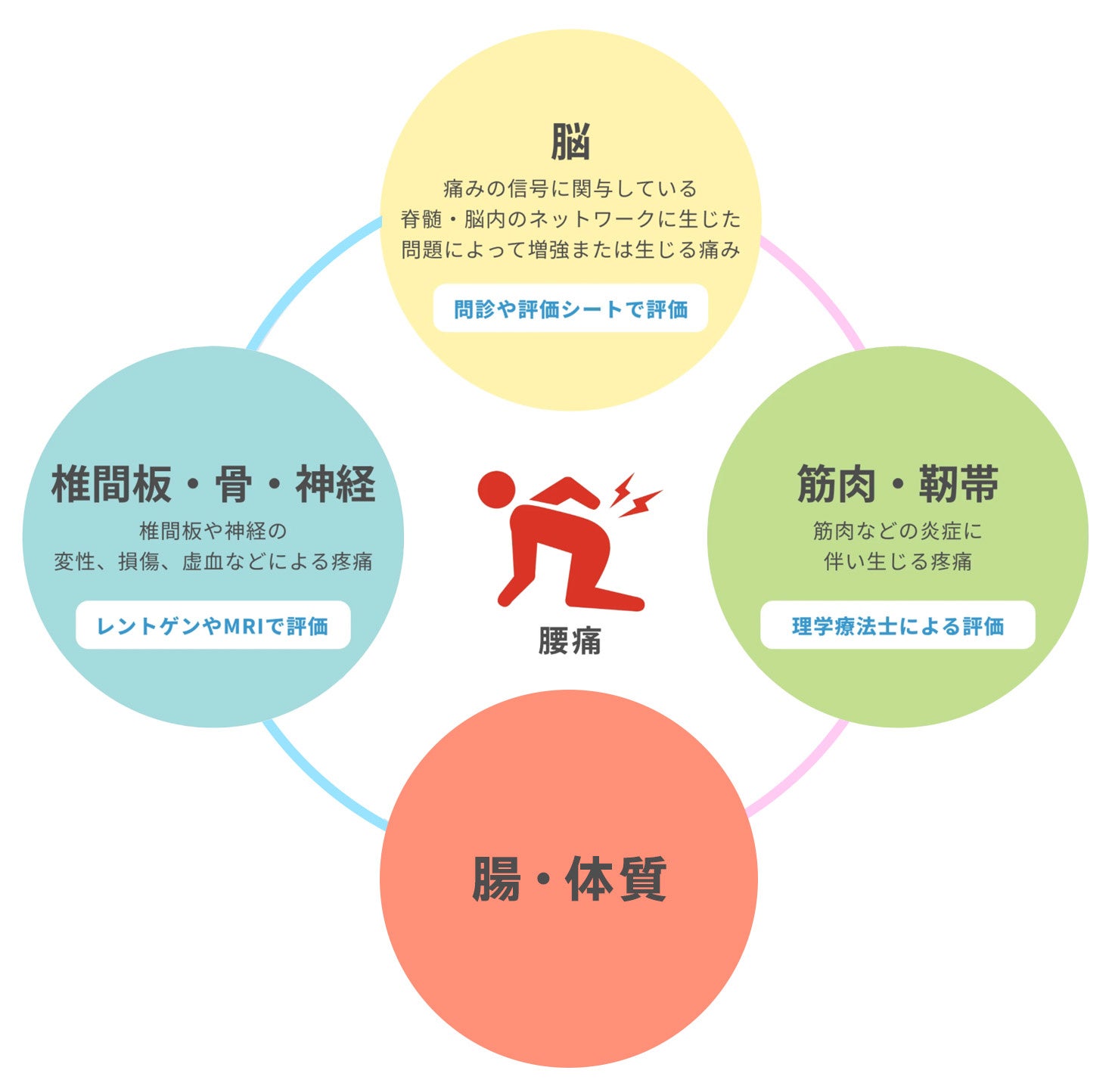 これらは単独ではなく、相互に影響し合いながら腰痛を悪化させる悪循環を形成していると推察されます。