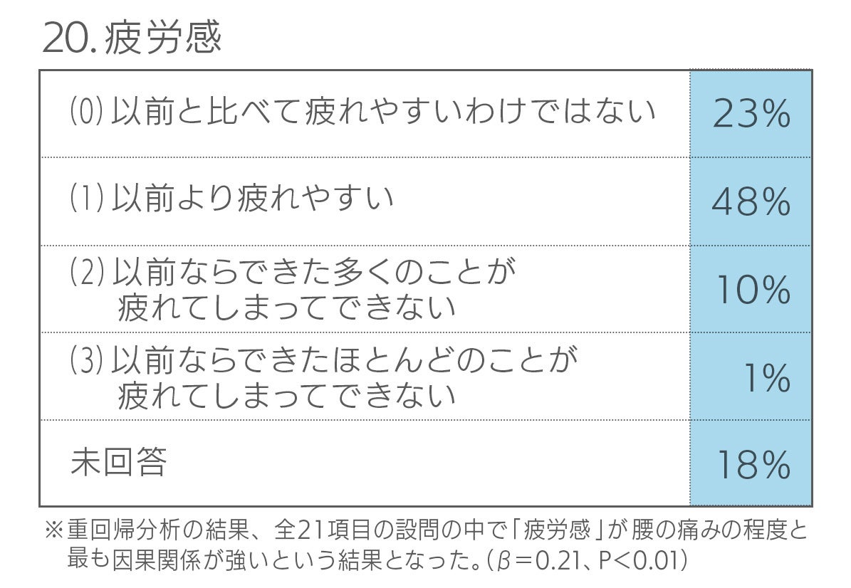 疲労感・自殺念慮・食欲の変化・興味喪失の順で腰痛との因果関係が強い
